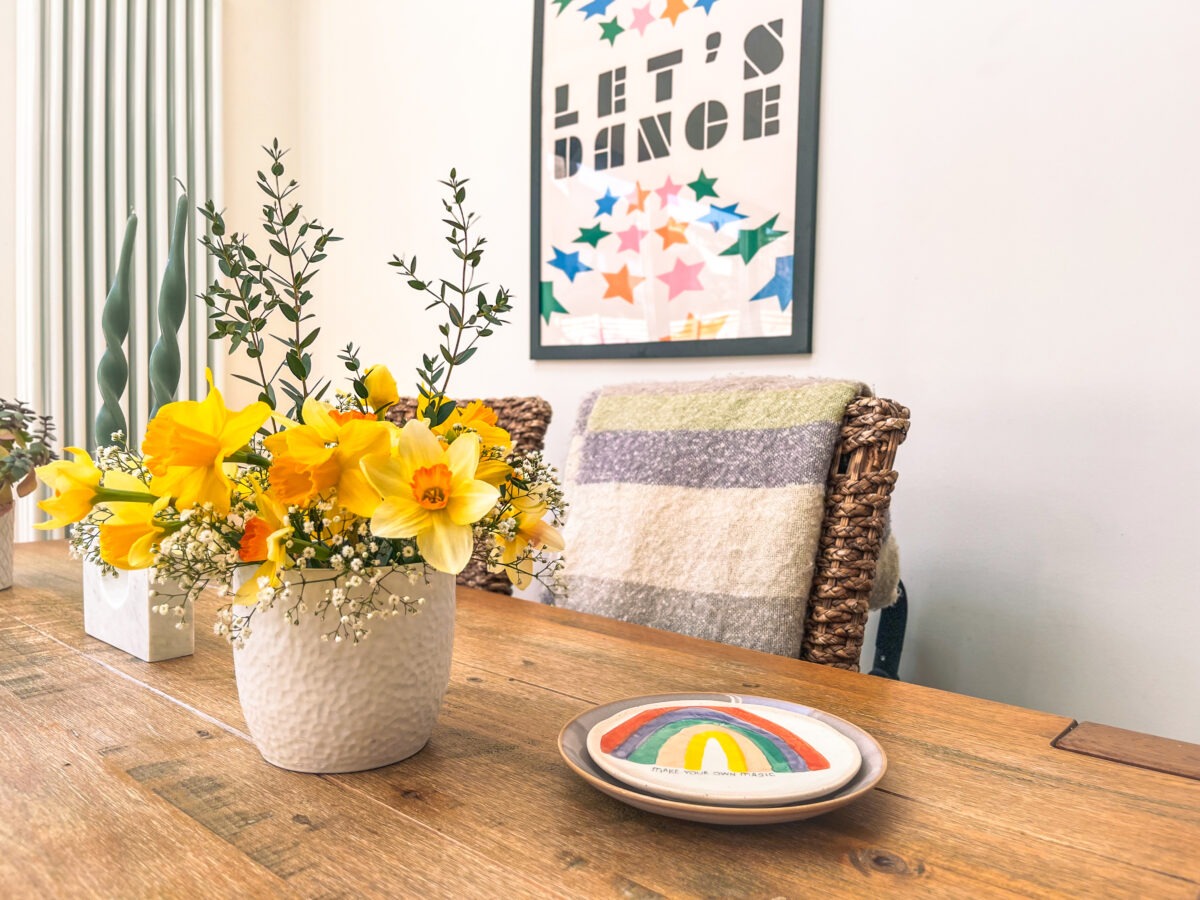 Easy Tip: Introduce low-maintenance plants like snake plants or peace lilies, add fresh spring flowers like tulips or daffodils, and open your windows to welcome spring freshness indoors (although fellow hayfever sufferers, beware!).