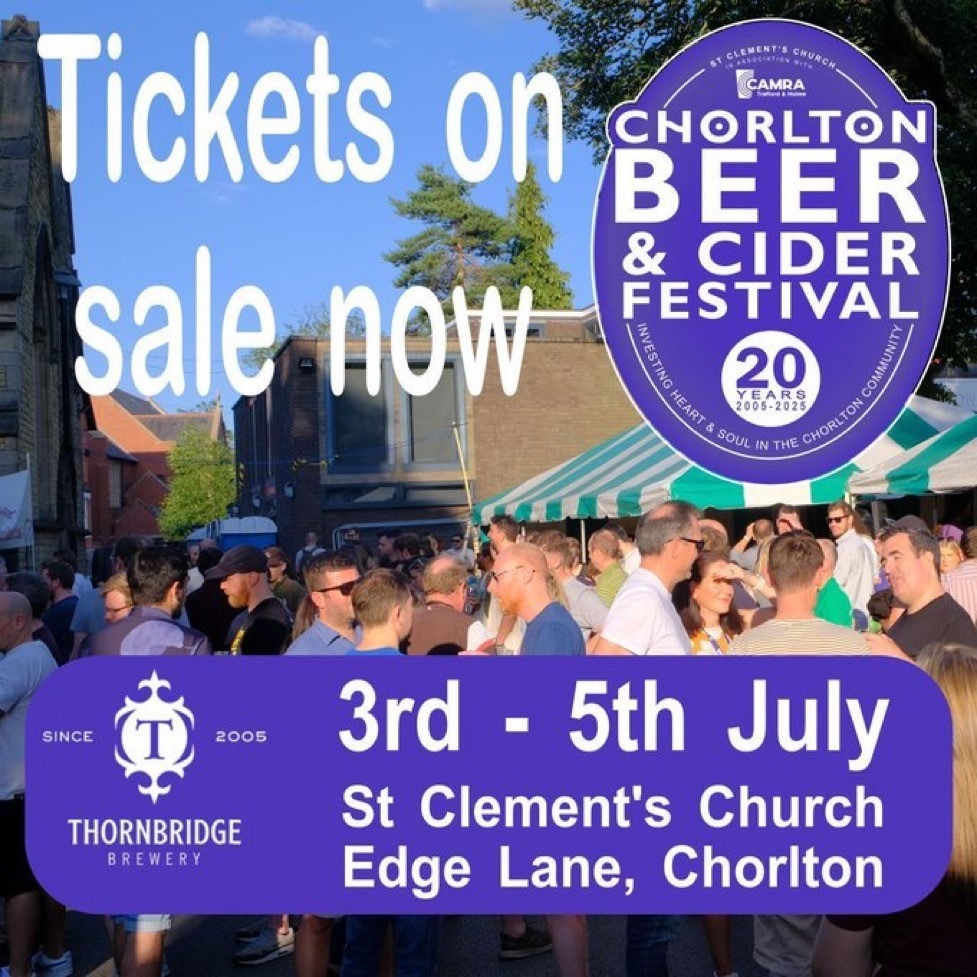 The 20th Annual Chorlton Beer and Cider Festival takes place from 3rd – 5th July 2025.