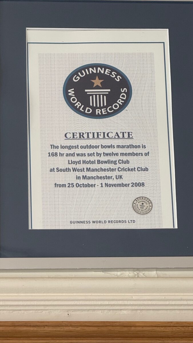 Our main fundraising has been carried out simultaneously with our attempts to beat the Guinness World Record for the longest game of outdoor bowls. Our club beat the existing record in 2003, 2006, and again in 2008 when we played non stop for 168 hours, a week!.
