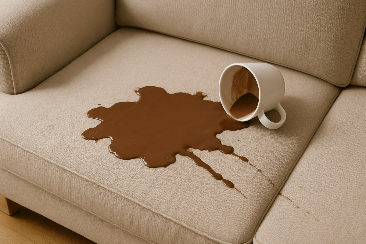 If you should find an old tea, coffee or hot chocolate stain, all is not lost. Mix together a solution of equal parts of white vinegar, washing up liquid and warm water and blot the stain till it absorbs the liquid. Leave it for a few moments and then soak it up with a microfibre cloth, rubbing gently to lift the stain. You may need to do this a couple of times.If it’s really stubborn, apply the liquid and leave it in place for 10-15 minutes, then go again.