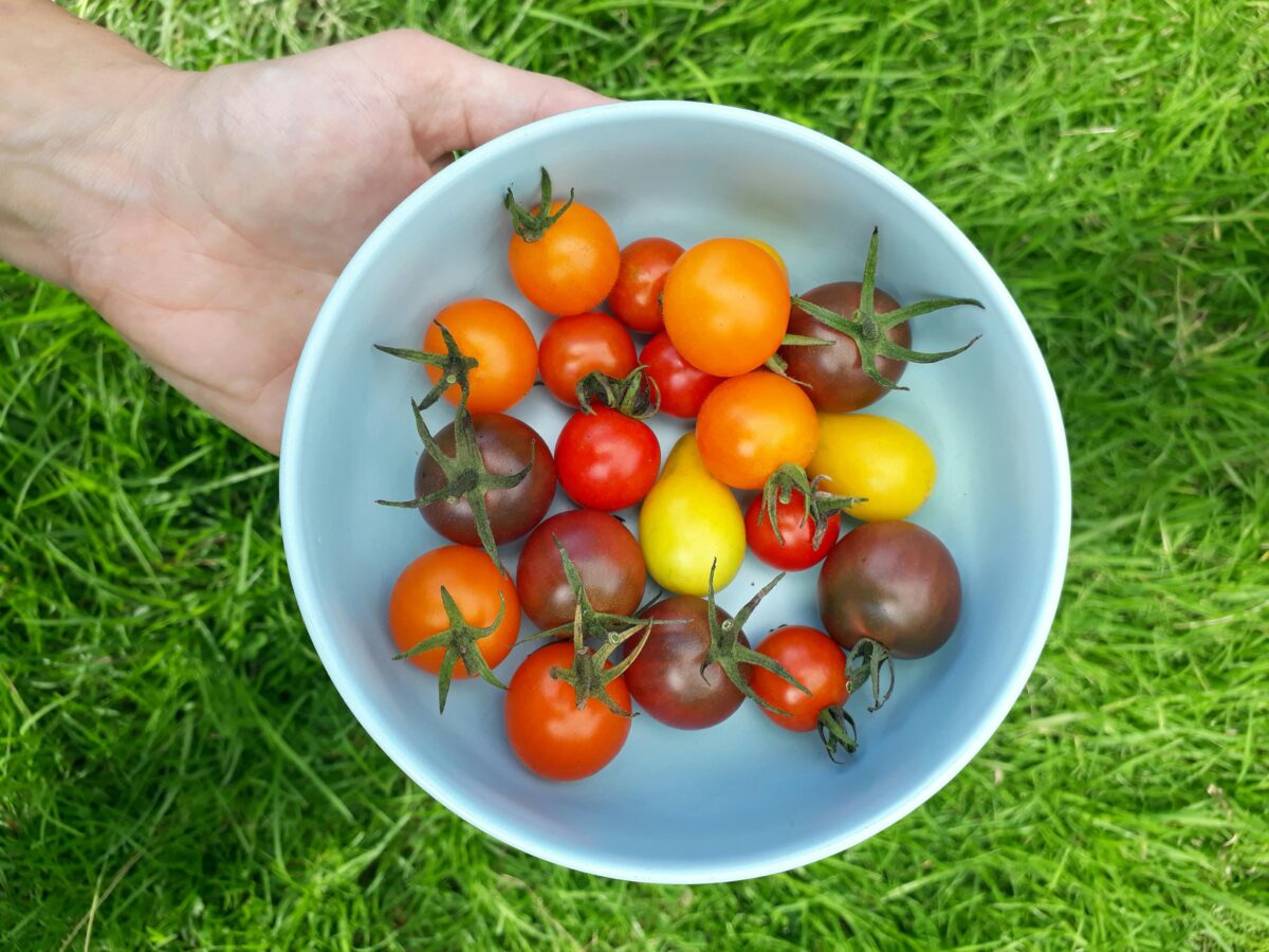 Tomatoes are really easy to grow and can be planted in even the smallest of gardens, or a balcony. You don’t even need a greenhouse, just a spot that gets plenty of sun where you can fit a few pots or a growbag, or can fit a few plants into a sunny border. Home grown tomatoes, picked minutes before eating, really do taste so good.