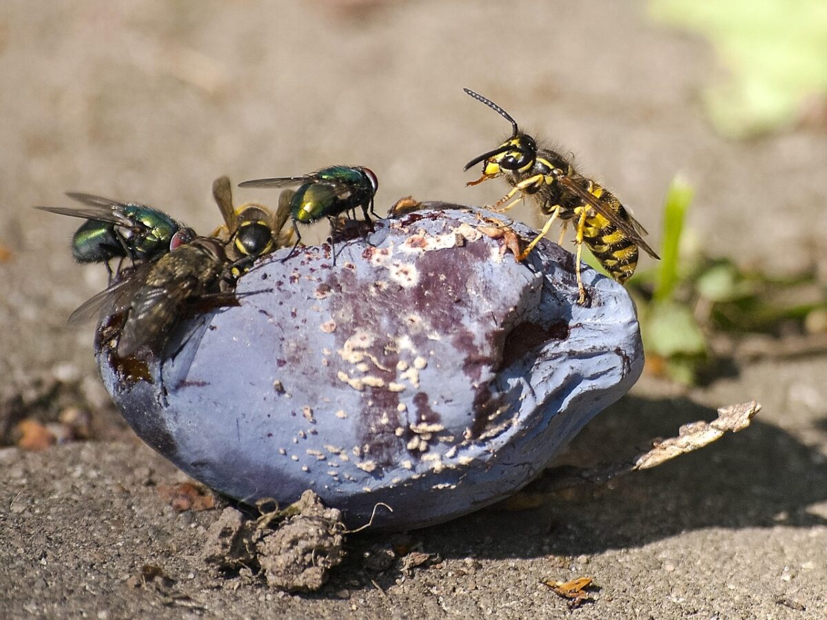 Fallen fruit such as plums or apples will quickly attract wasps, foxes, and even rats (shudder). As the fruit starts to ripen, some will drop before it’s edible to us, but it’s still a draw to non-humans, so do a regular check below any fruit trees to scoop up anything that might make a meal for a small creature. When the fruit starts to ripen, stay on top of harvest any edible fruit and keep the ground clear of windfalls.