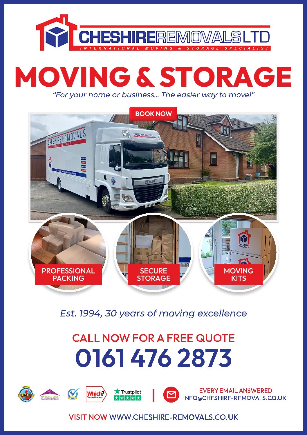 e-mail info@cheshire-removals.co.uk or Enquire Now https://cheshire-removals.co.uk/form