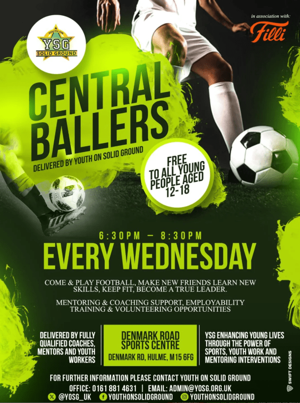 Community (Youth) on Solid Ground – YSG (Charity) is a youth, sport, and community organisation based in Manchester, UK, dedicated to empowering young people aged 6-18 and strengthening local communities. Operating primarily in Whalley Range, Chorlton, and across the wider South Manchester area, YSG delivers a diverse range of programmes focused on building confidence, resilience, and overall wellbeing through positive engagement, education, sport, mentoring, and tailored support services.