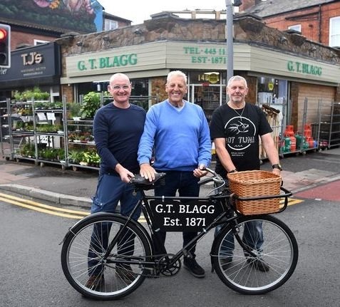 Pictured above, from left to right: Lee (Owner, passed on by Alan), Alan, a long-time member of the G.T. Blagg family, and Geoff (Delivery Driver). Also featured is the iconic G.T. Blagg delivery bike, once ridden by Mr. Gracie, Alan’s father.