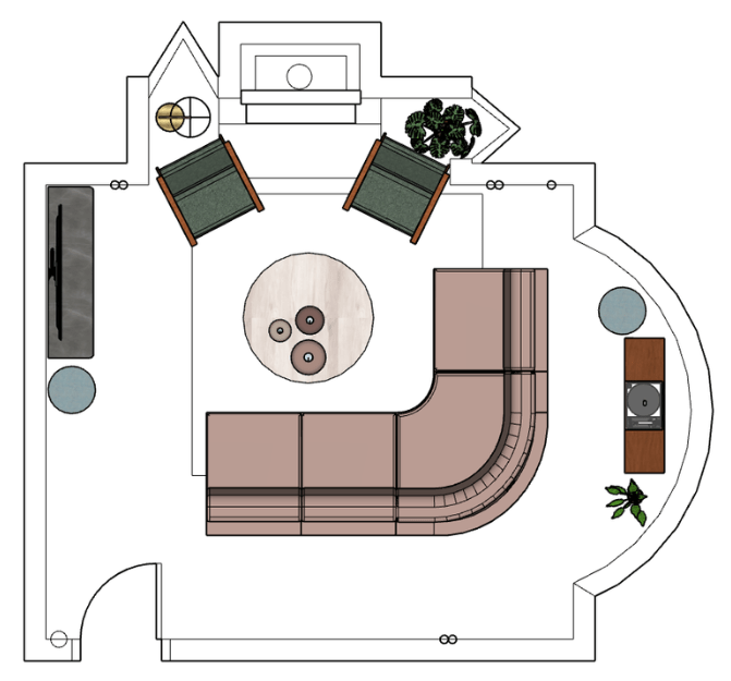 By refining the furniture layout, rethinking the TV placement, and introducing layered lighting, the space began to breathe again. The architectural features were enhanced, circulation felt natural, and the overall atmosphere softened.