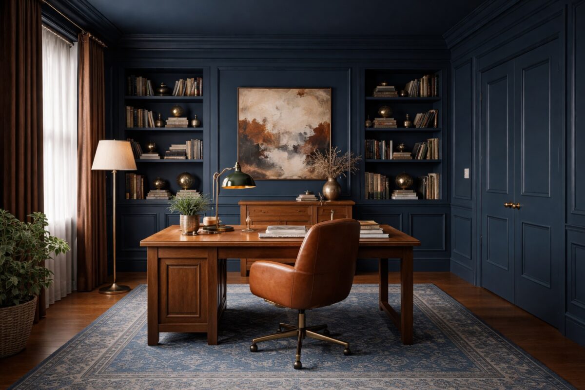 Deep, saturated shades also work brilliantly in small studies and box rooms. An inky navy, bottle green or aubergine wrapped around all four walls and the ceiling can make a tiny home office feel purposeful and snug rather than poky. Built‑in shelving, radiators and even the inside of the door can all be brought into the same colour to blur boundaries further. If you worry about a full “colour cave”, try using the main shade on walls and joinery, with a slightly lighter tonal variant on the ceiling for subtle lift.