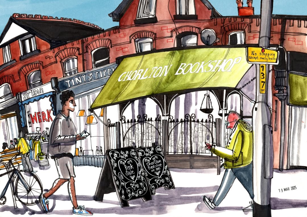If you love Chorlton as much as we do and want to support this incredible local project, now’s your chance. Order your copy of The Chorlton Sketchbook today and own a unique celebration of our community. A 104-page hardback book of Len’s urban sketches from this Manchester suburb.