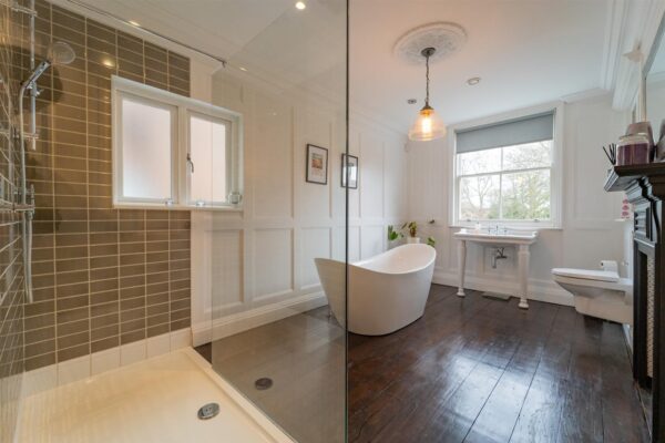 The first floor consists of two double bedrooms; the bedrooms are fitted with spacious wardrobes. There is also an attractive four-piece bathroom with walk in shower and a free standing bath.