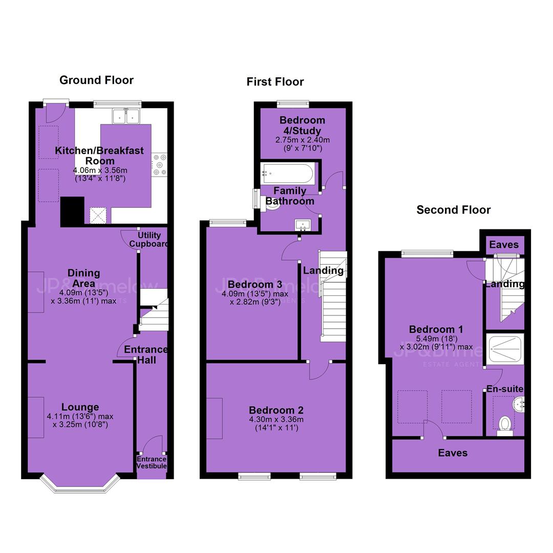 Whilst to the second floor there is a landing leading to a further impressive double bedroom that benefits from an ensuite three-piece shower room, and useful storage space available in the eaves of the loft.