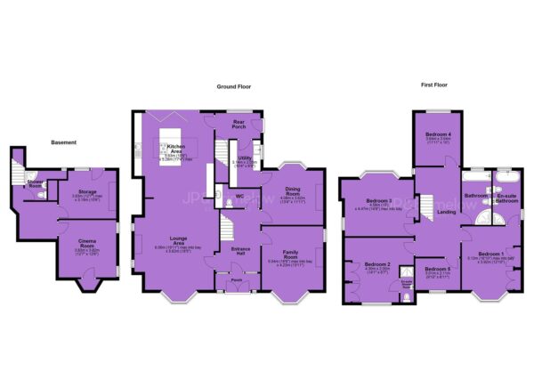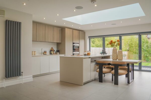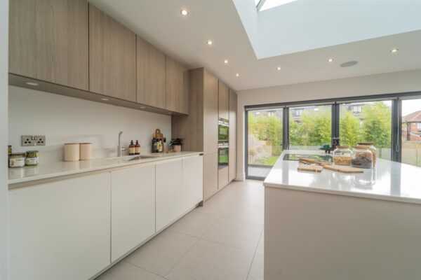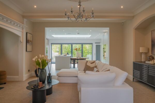 A truly stunning and spacious SIX DOUBLE BEDROOMED/FOUR BATH, bay fronted detached property with accommodation spread over three floors including converted cellars. (The basement has the potential to be a self-contained one bed apartment with its own entrance) A beautifully fitted ‘Siematic’ kitchen and appliances are Siemens with silestone worktops, double glazed throughout, an alarm system, Duravit’ sanitary ware with ‘Hansgrohe’ taps, fitted carpets throughout with a contemporary yet neutral décor. The well-planned accommodation comprises; porch, reception/entrance hallway, lounge with a bay window to the front aspect, downstairs W.C/cloakroom, play room, an impressive open plan, fully fitted kitchen/family/dining room with bi-folding doors out onto a raised decked patio terrace, a rear porch, a utility room to the ground floor and access down into the converted cellars.