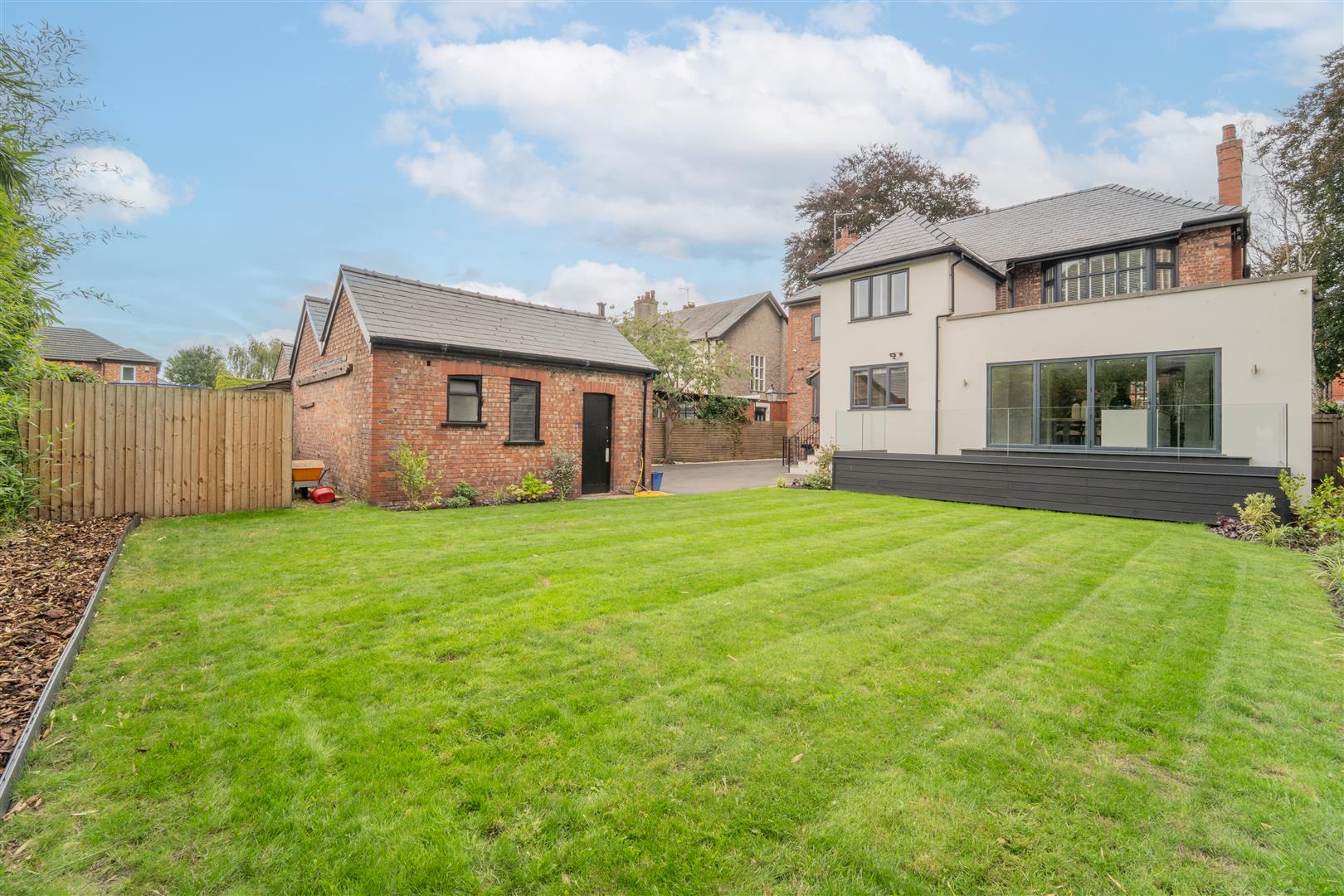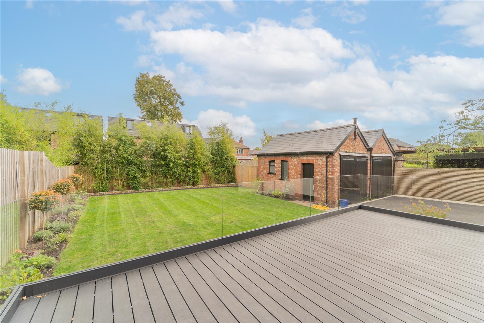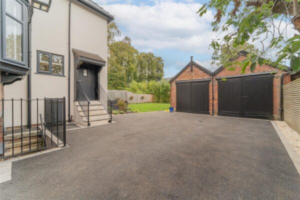 To the front aspect there is a low level brick boundary wall with double gated leading to a tarmacadam driveway with decorative stone setts to border. Mainly laid to lawn. Well-stocked flower beds with a variety of shrubs and bushes. Mature trees. An original street lamp. To the side aspect there is a tarmacadam driveway with decorative stone setts to border leading to a double detached brick garage with power/lightning and a separate W.C. Timber batten fencing with the neighbouring property. To the rear aspect there is an enclosed lawned garden by the way of timber fencing with the neighbouring property. Wall mounted lights. Outside water tap. Access into the converted cellars. A raised and enclosed decked patio terrace. CCTV is installed.