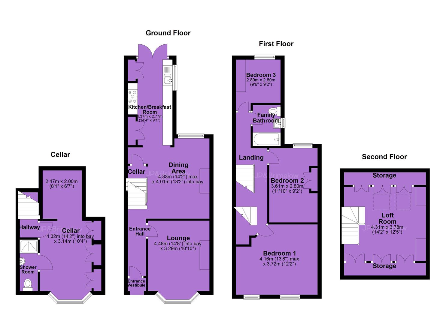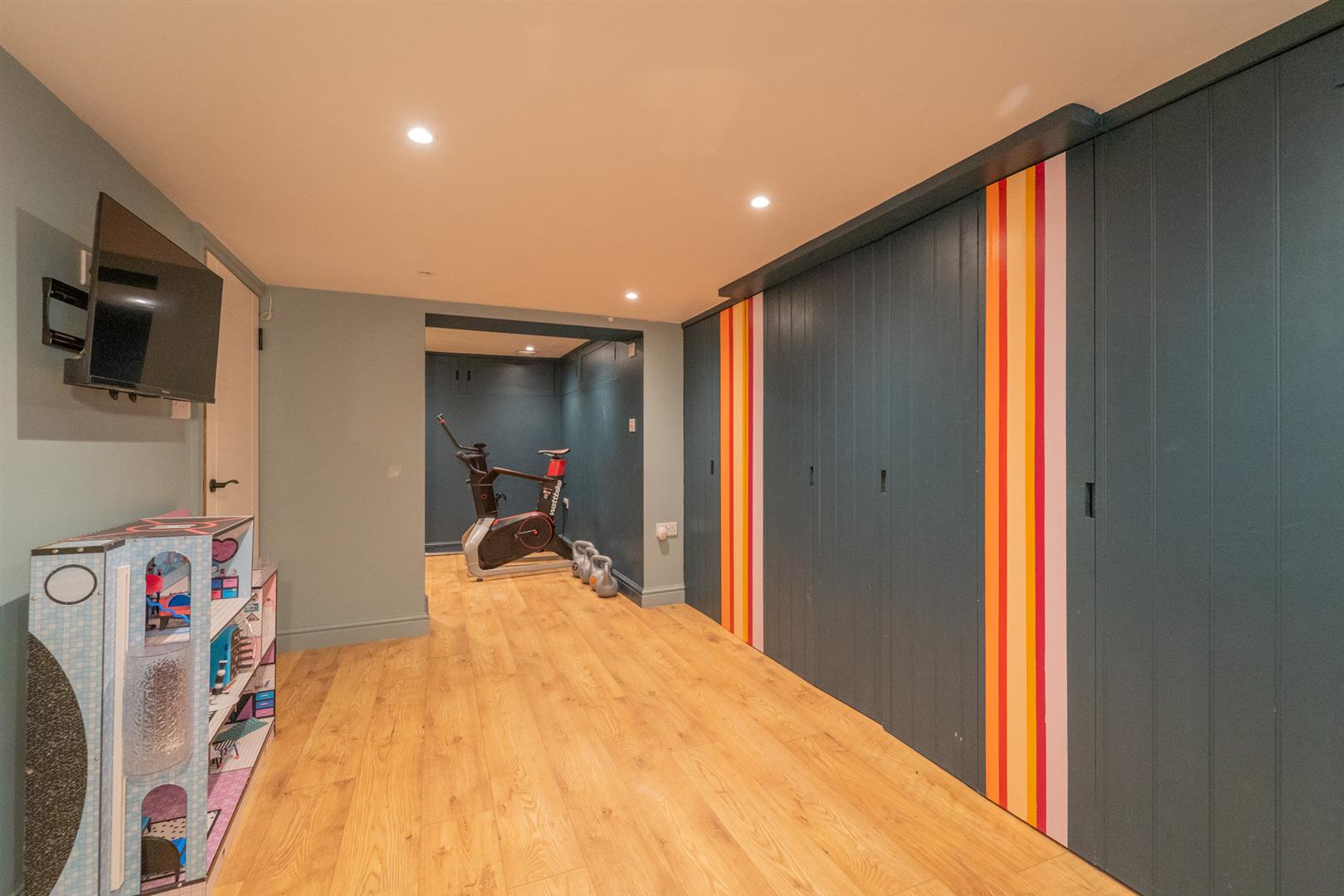 The cellar is currently being used a play room and benefits from built in storage and a three-piece shower room.