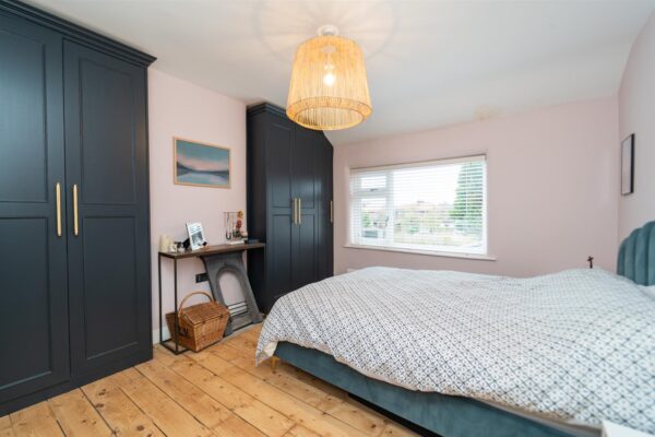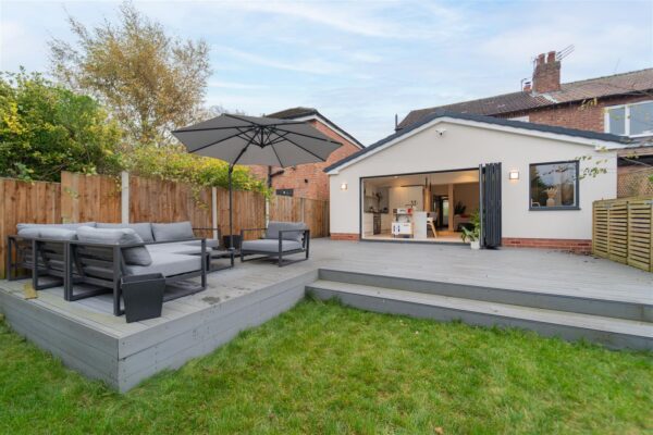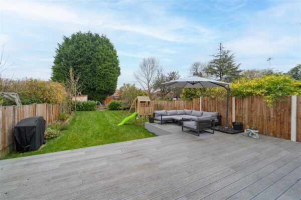 The front of the property is enclosed with a low-level brick boundary wall and timber fencing with the neighbouring property. The newly laid driveway provides off road parking for a large family car and includes an electric car charging point. A timber gate leads down the side of the property, through to the rear enclosed garden. The generous outdoor space includes a large decked area for entertaining leading down to a good sized lawned garden with raised beds at the rear, as well as a large shed.
