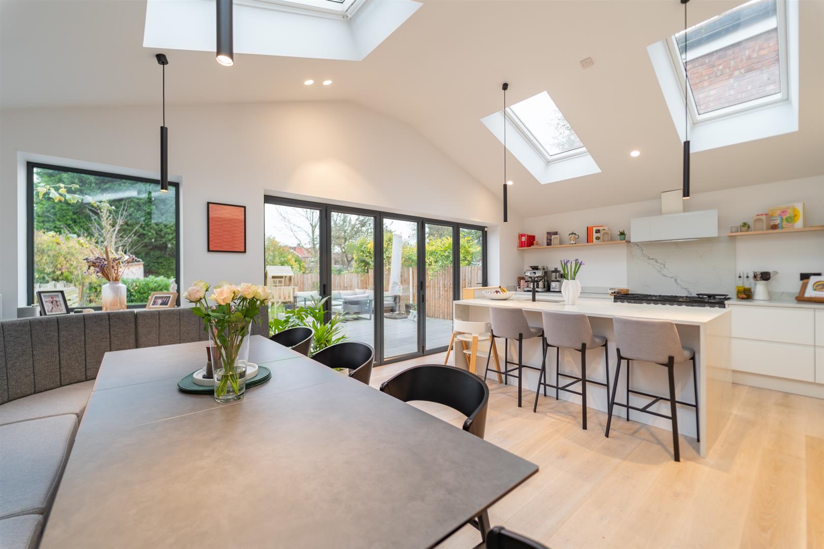 The property is clearly finished to a high standard and has been miraculously thought through by the current owners. Further features are to include; gas fired central heating, a newly fitted driveway providing off-road parking, along with an electric car charging point and a great-sized rear lawned garden. The kitchen has a bespoke banquet seating area, an instant boiling water tap and electric Velux windows.