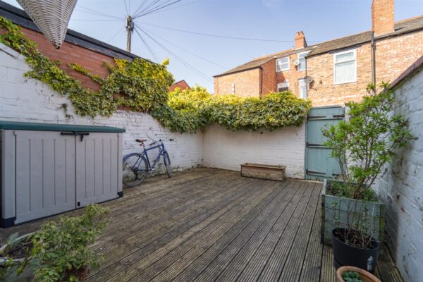 To the front aspect there is a low-level brick boundary wall, a pedestrian gate and a pathway leading to the front door. To the rear aspect there is a decked courtyard ideal to a table and chairs. A timber gate allows access into the communal service alley.