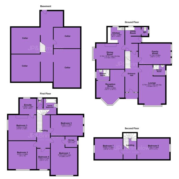 In brief, the spacious accommodation consists of; a vestibule, an entrance hallway with stairs leading down to the storage cellars, a reception room with a bay window to the front aspect with a two-piece ensuite shower room, a dining room leading to the kitchen area, a lounge to the front aspect with a further two-piece ensuite shower room, a family room with views to the side aspect, a hallway with access out into the garden, a utility area, and a downstairs W.C completes the ground floor.