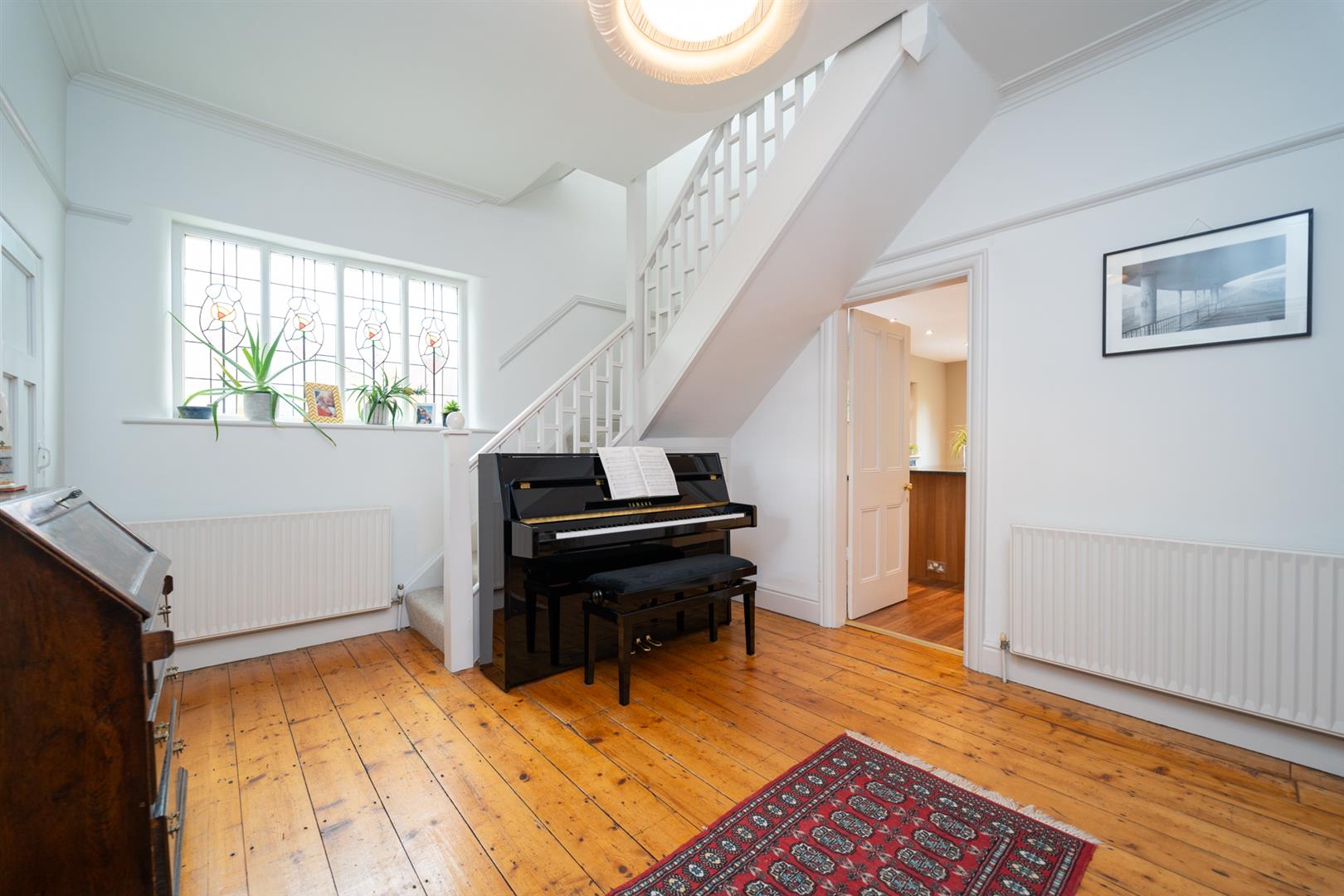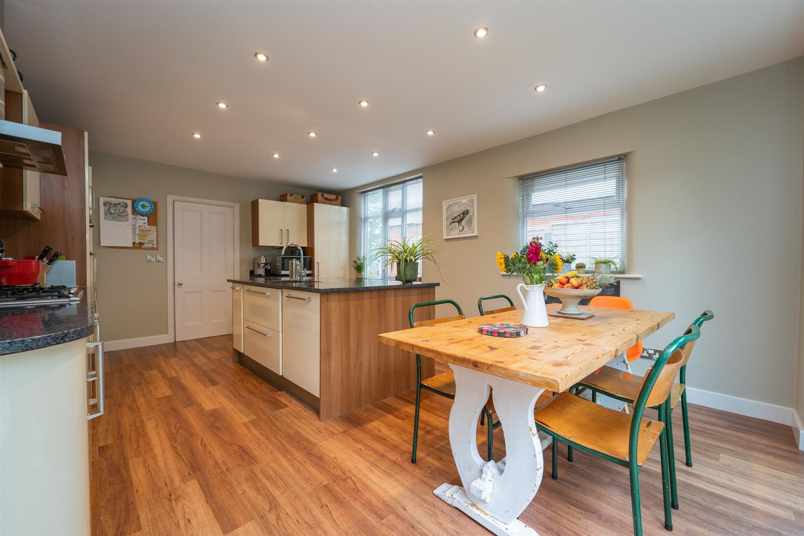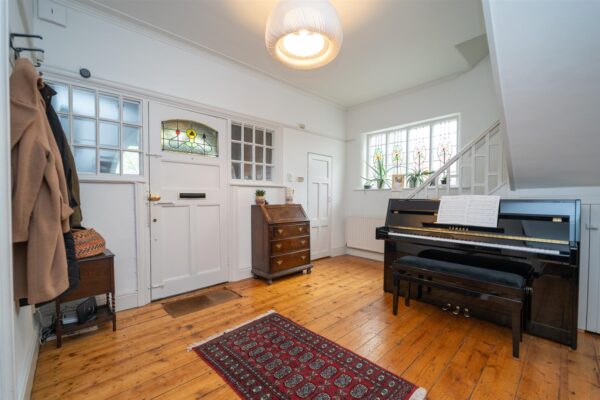The well-planned accommodation consists of an entrance porch, an impressive reception hallway with stained glass windows, a useful downstairs W.C, a lounge, a family room with access out into the rear garden, an open plan spacious fitted kitchen/dining room with further access into the rear enclosed lawned garden and a utility room completes the ground floor.