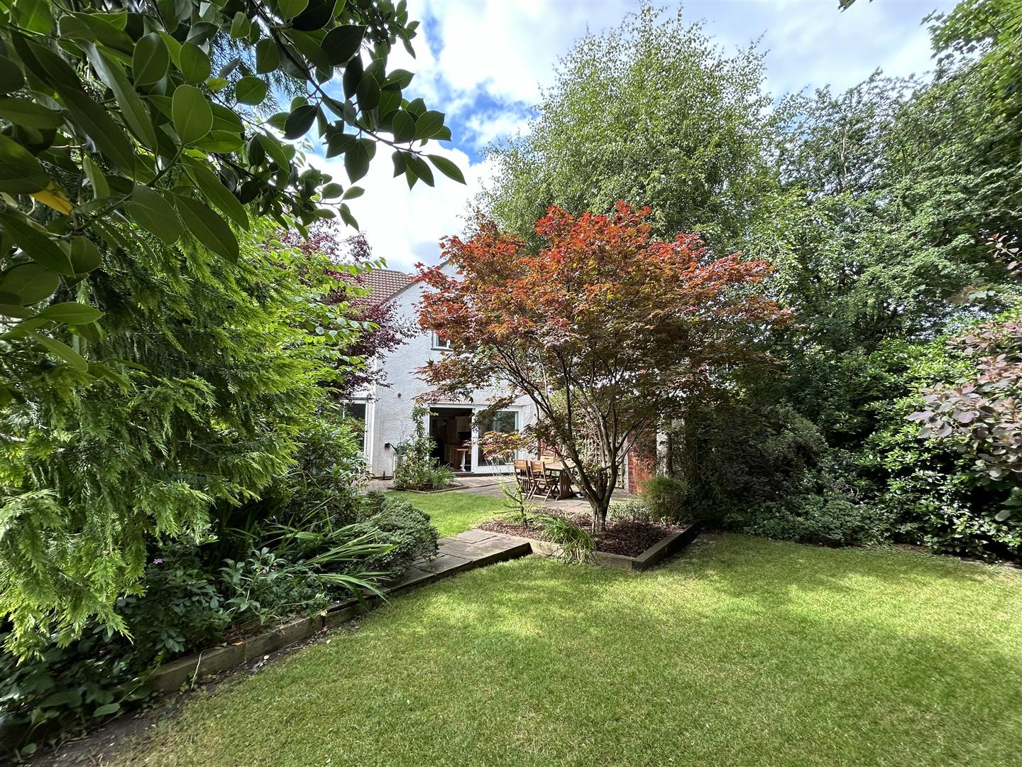 To the front aspect there is a low-level stone brick wall with a mature hedgerow and raised flower beds. A paved path leading to the front door. A paved driveway provides ample off road parking leading to a detached garage. To the rear aspect there is a larger than average enclosed south facing rear garden by the way of timber panelled fencing. There is access from a side gate off the drive, this opens on to a decked seating area that wraps around to the kitchen and family room patio doors. The lawn is split into two sections surrounded by trees, shrubbery and raised flowerbeds.