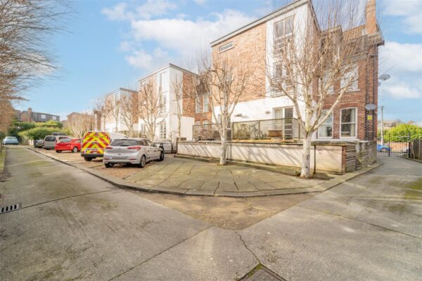 To the front aspect there are steps leading up to the front door. To the side aspect there are electric gates leading to the communal parking area.