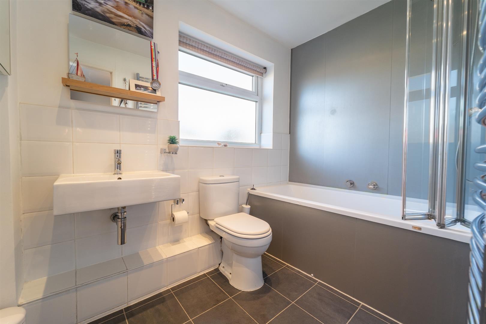 To the front aspect there is a lawned garden, a driveway providing off road parking and access into the garage. To the rear aspect there is a gravelled garden, a patio area ideal for a table and chairs and an variety of shrubs, bushes and plants, all enclosed with timber fencing to the neighbouring properties.
