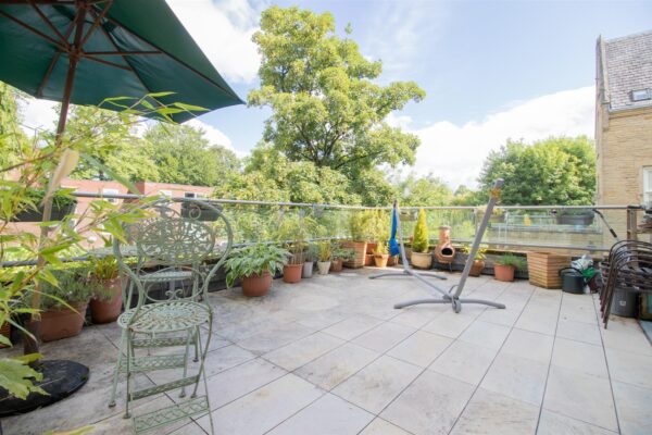 To the front aspect there is a brick wall with decorative railings, pedestrian gate and double electric gates leading to the driveway. There is an enclosed raised lawned area, mature and well stocked flower beds planted with a variety of shrubs, bushes and mature trees. Paved path leading to the front door. To the side aspect there is a car park with an allocated parking space for the apartment. Private to the apartment is a stunning roof terrace providing fantastic view and enclosed by railings. Spacious enough for a table and chairs and perfect for outdoor entertaining.