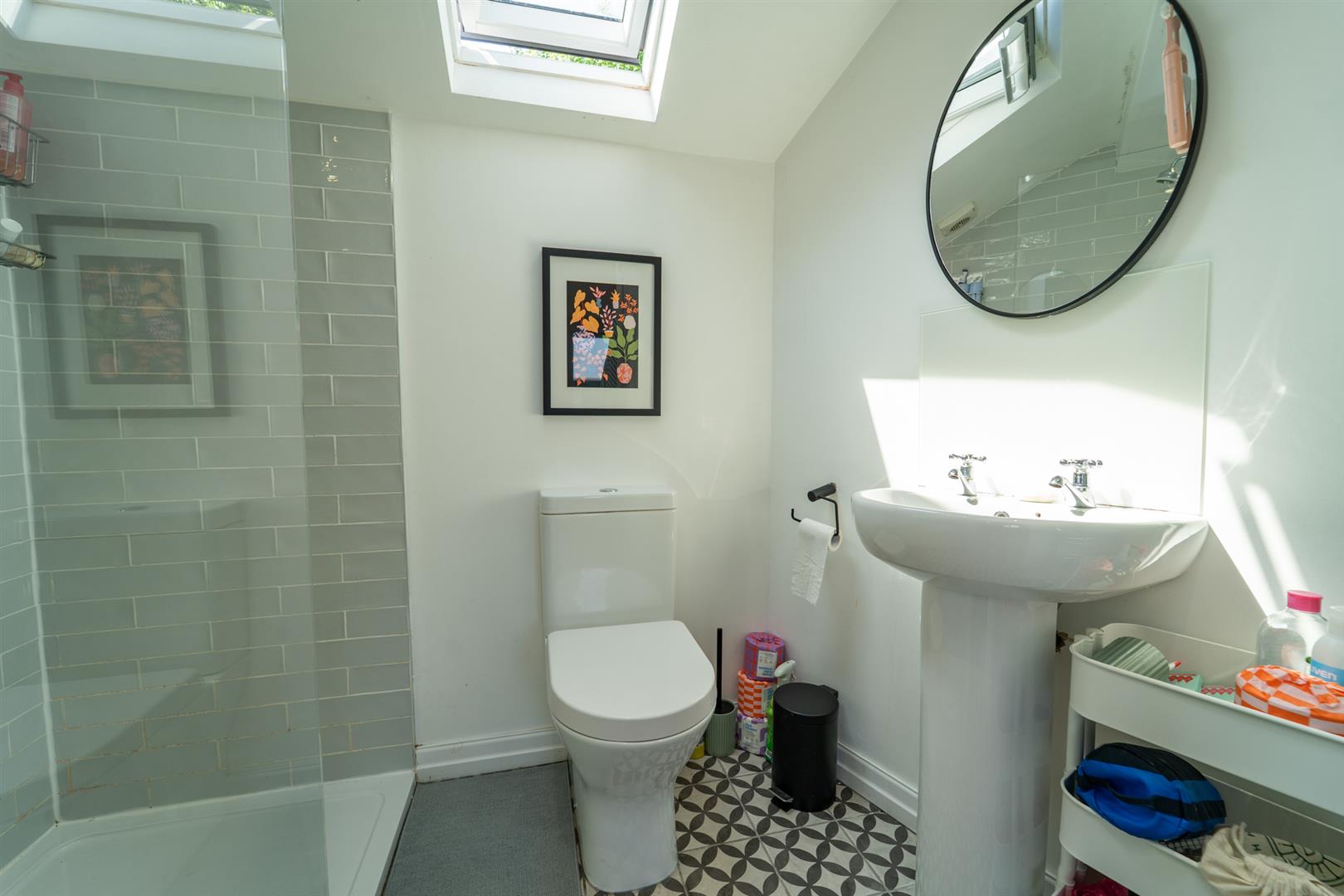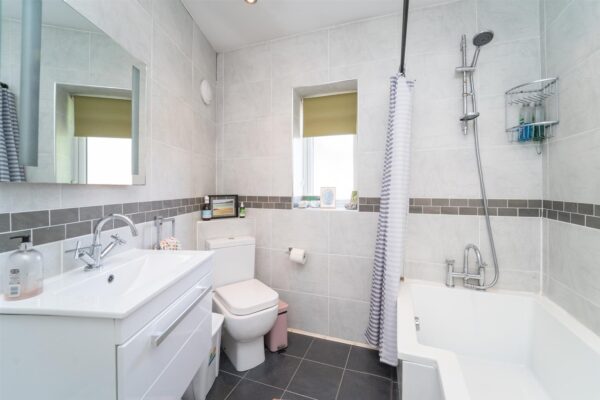 To the first floor there is a landing leading to two double bedrooms and a three-piece white family bathroom.