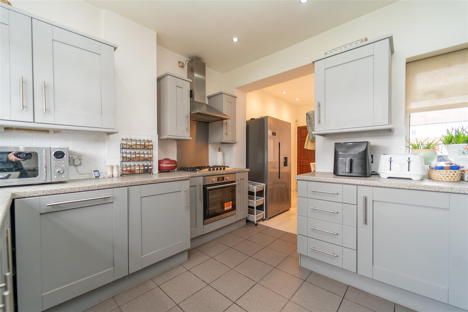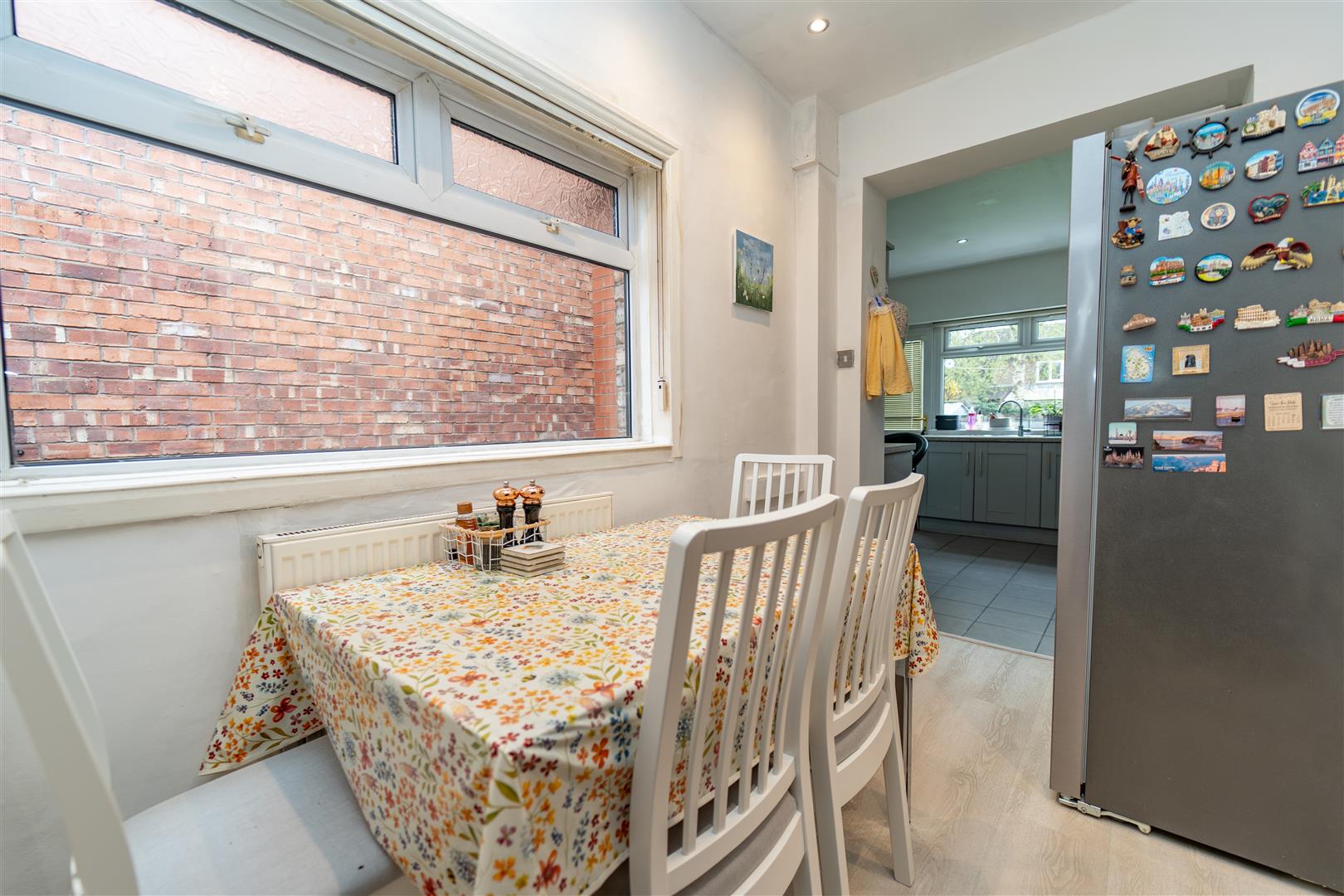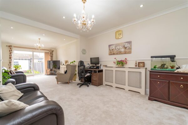 The well-designed accommodation consists of a porch, an entrance hall, a dining room with a bay window to the front aspect, a lounge with views and access out into the rear enclosed lawned garden and an extended fitted kitchen/breakfast room completing the ground floor.
