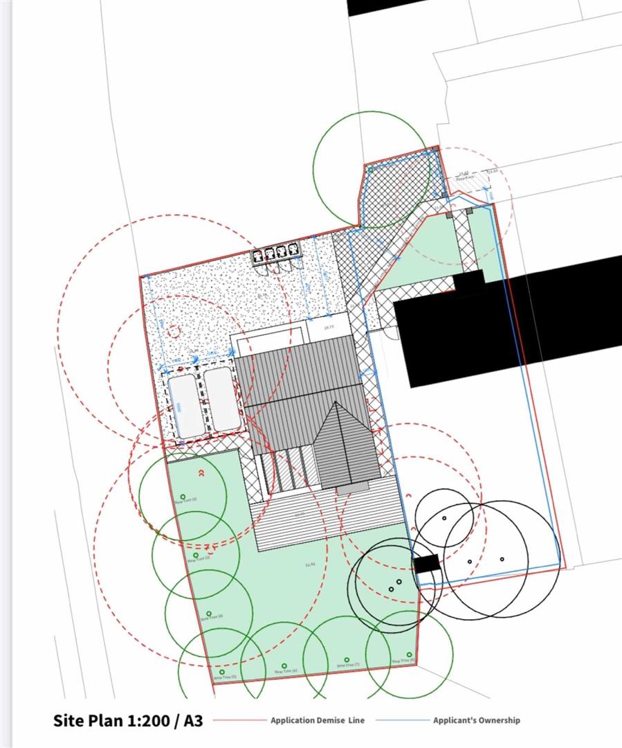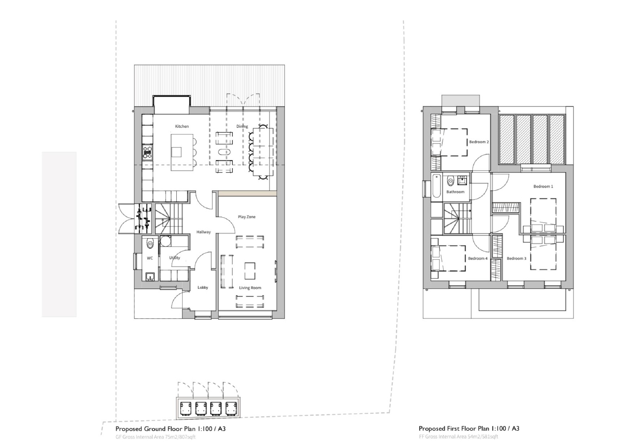 Land with planning permission for 4 bedroom detached house with off road parking.