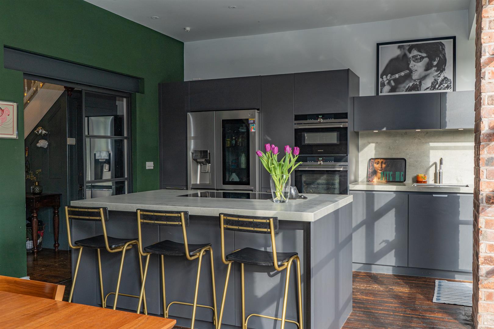 The well-planned accommodation comprises; a reception hallway with access to the chamber cellars, a lounge to the front aspect with a stunning bay window with stained and leaded glazing. An opening to a dining room with a beautiful open fireplace and crittal double glazed French doors leading out into the rear garden and the ground floor is completed with this stunning bespoke fitted kitchen with a Quooker hot water tap, Siemens appliances and a breakfast island.