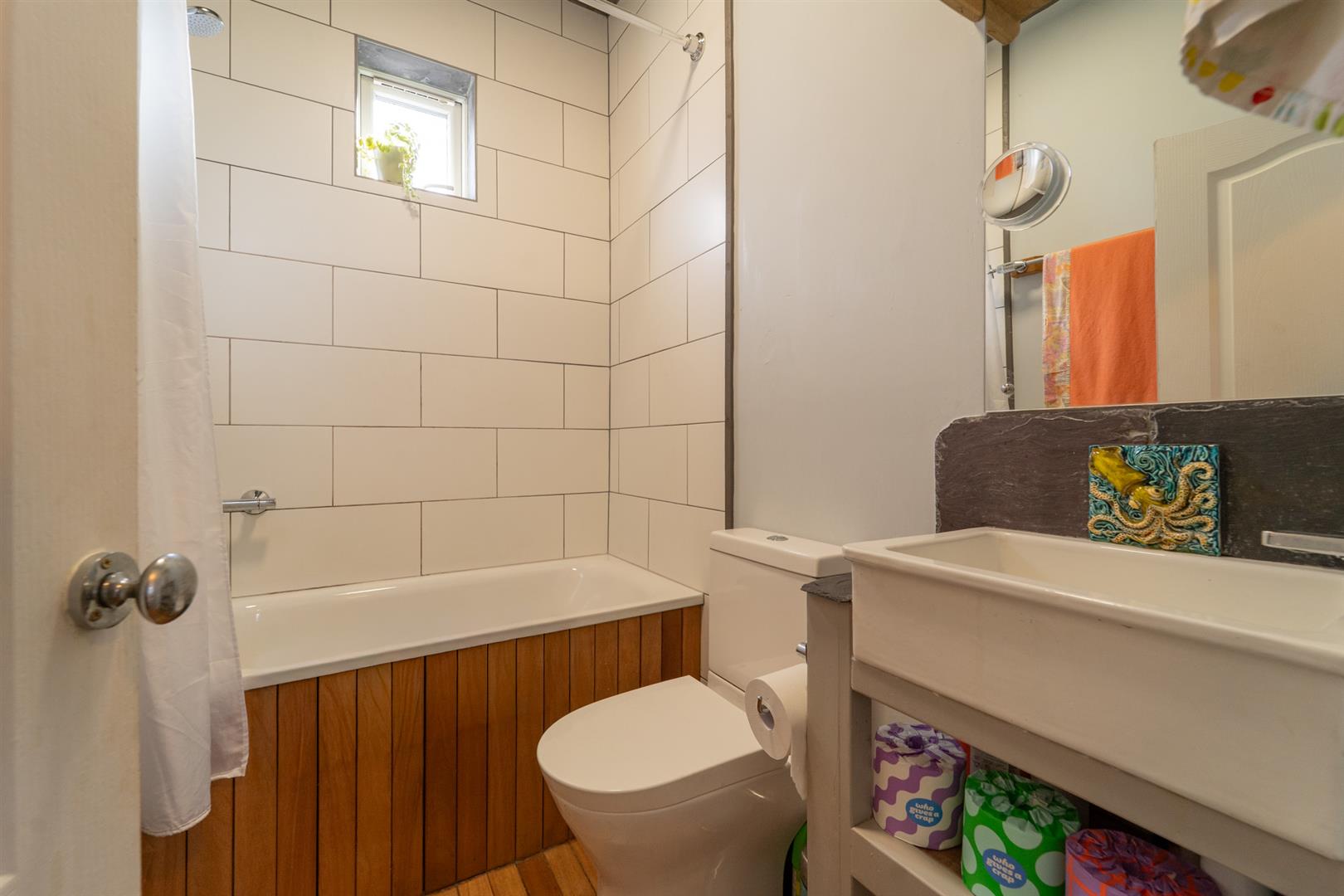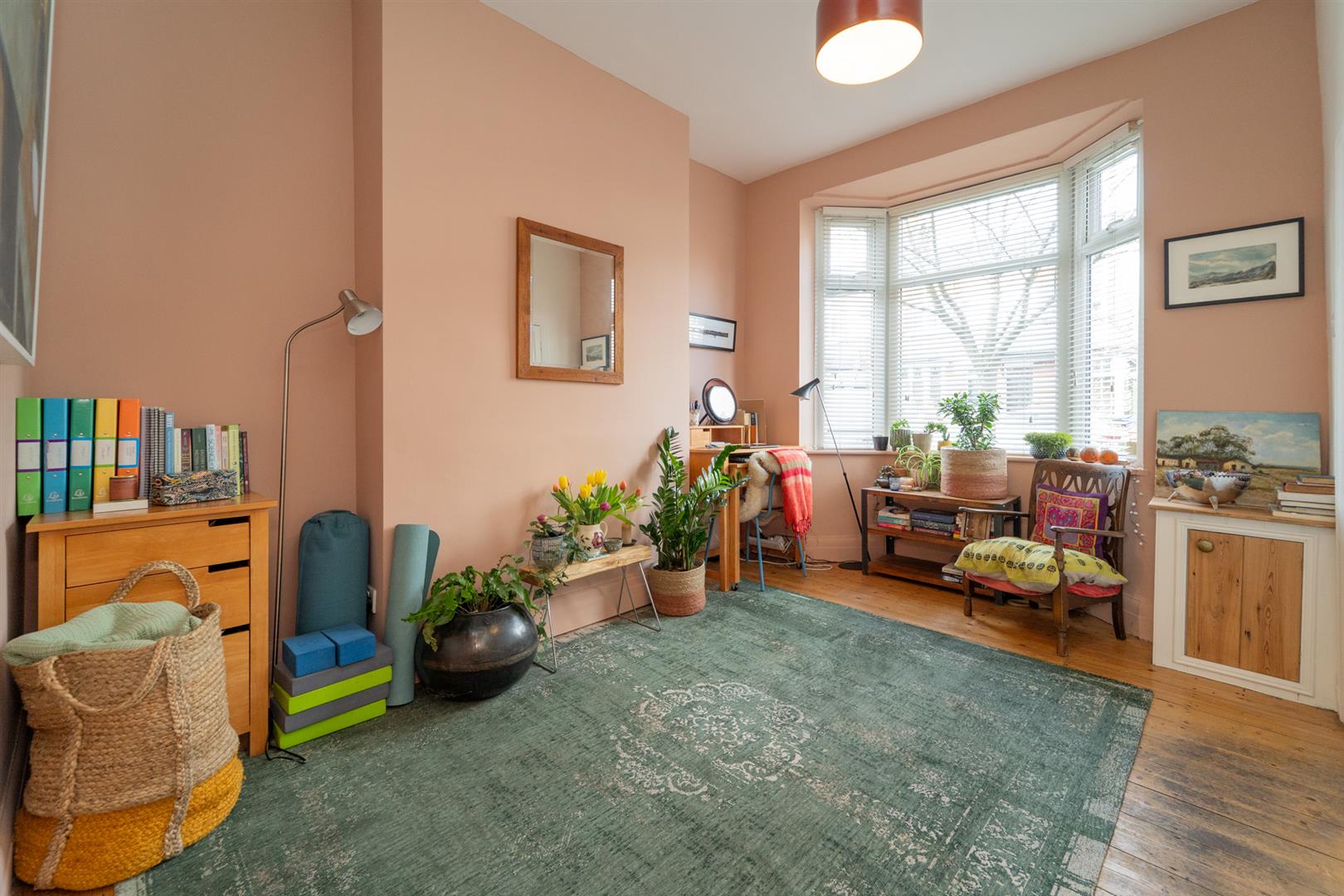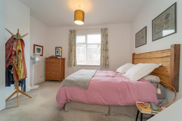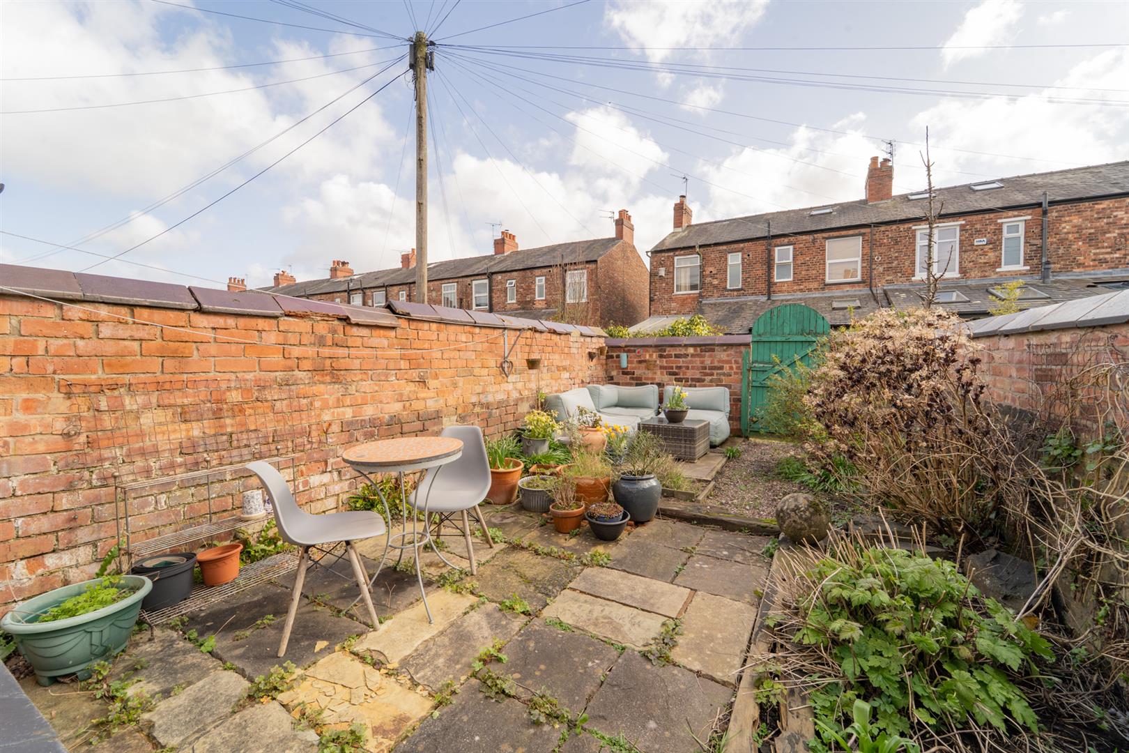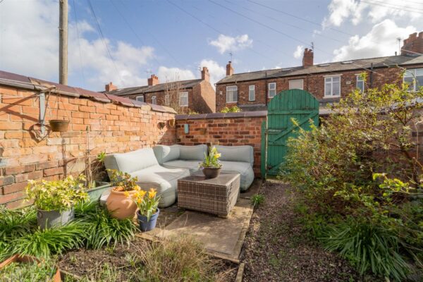 At the front, the property is defined by a low brick boundary wall with a wrought-iron pedestrian gate, complemented by a brick wall and panelled fencing along the neighbouring properties. To the rear, a courtyard garden is fully enclosed by a brick boundary wall, with a timber gate providing access to a rear service alley. The garden features a combination of paved areas ideal for seating and raised and planted flower beds.