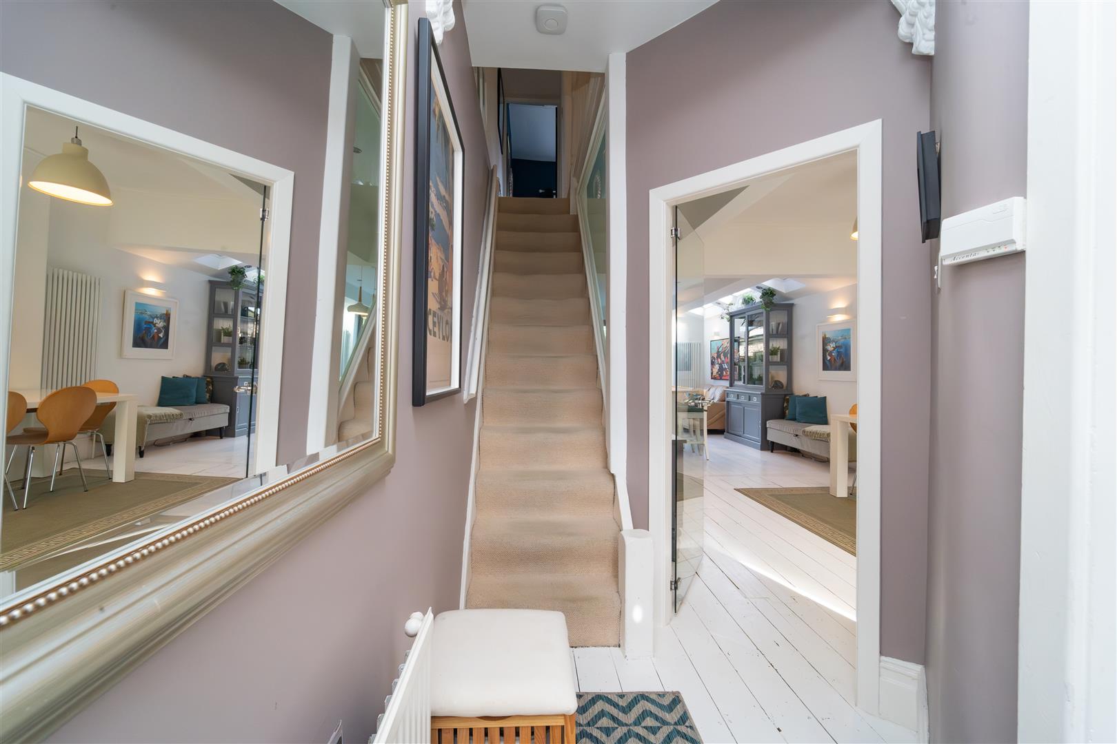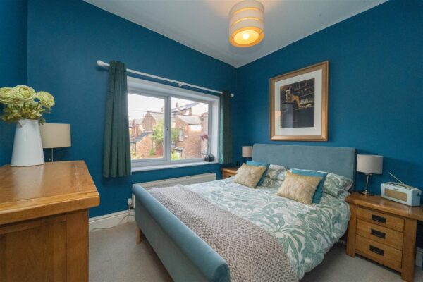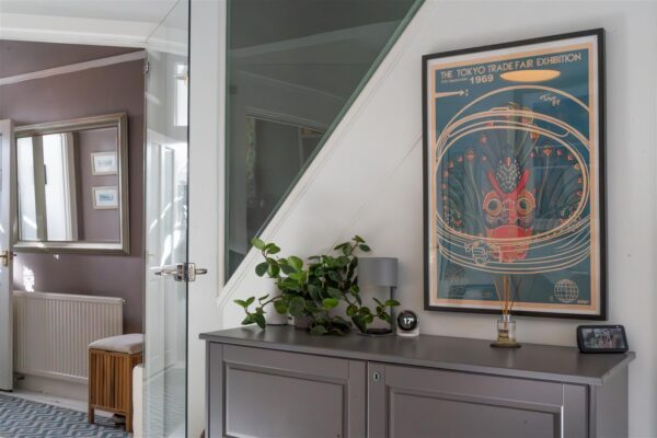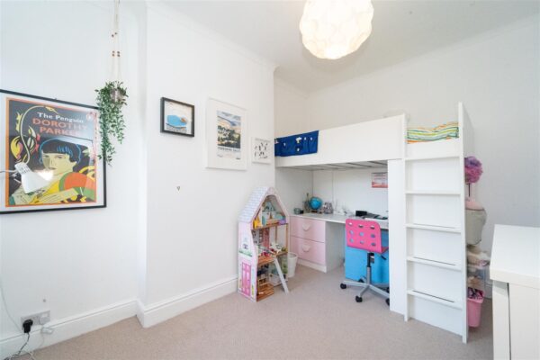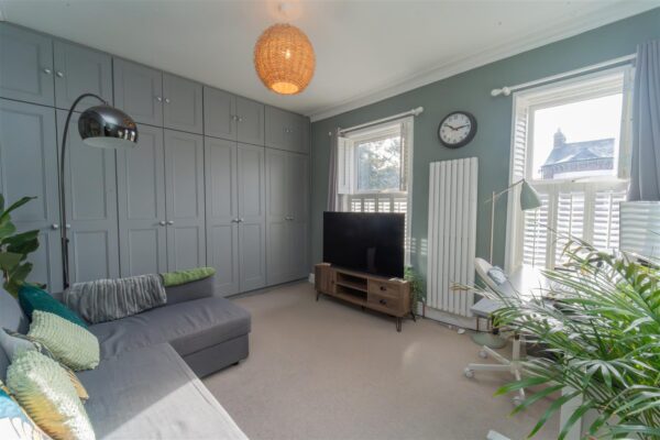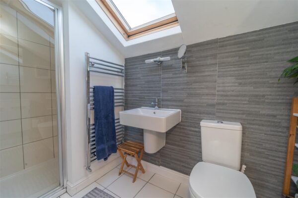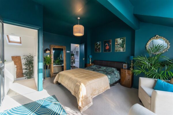 On the first floor, you’ll find three generous double bedrooms, with the front bedroom offering built-in wardrobes along one wall, and a stylish three-piece bathroom.