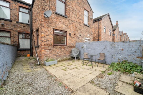 To the rear aspect there is a paved garden ideal for a table and chairs. The garden is enclosed with brick built walls to the neighbouring properties and a timber gate allows access out into the service alley.
