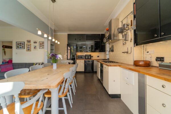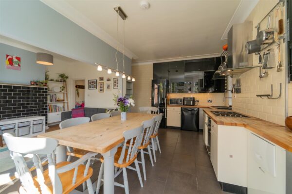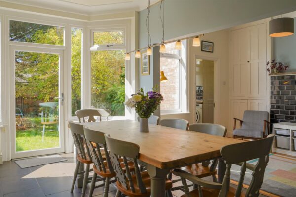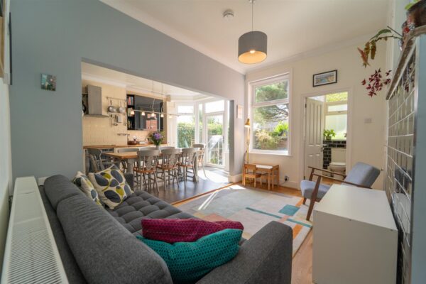 In summary, the accommodation features a porch, a welcoming entrance hall which allows access down into the chamber cellars, to the front aspect there is a large living room complete with bay-window, to the rear there is a spacious open plan fitted kitchen/ diner which has views and access out into the rear enclose SOUTH FACING garden. Additionally, you will find a delightful lounge area and useful utility space completing the ground floor.
