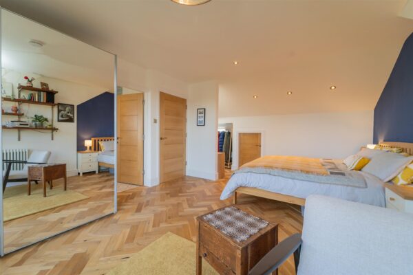 Stairs leading to the second floor reveal the principal bedroom which offers a modern white three-piece en-suite shower room, a dressing area and useful eaves storage space.