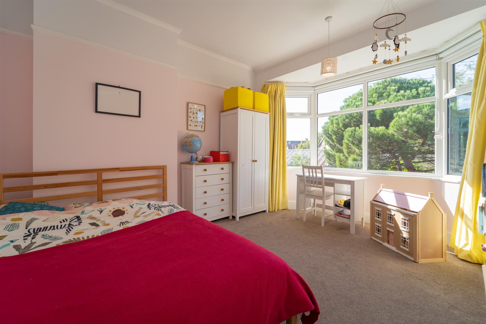 To the first floor the landing reveals three double bedrooms and a further nursery/office room, and a white four-piece bathroom suite.
