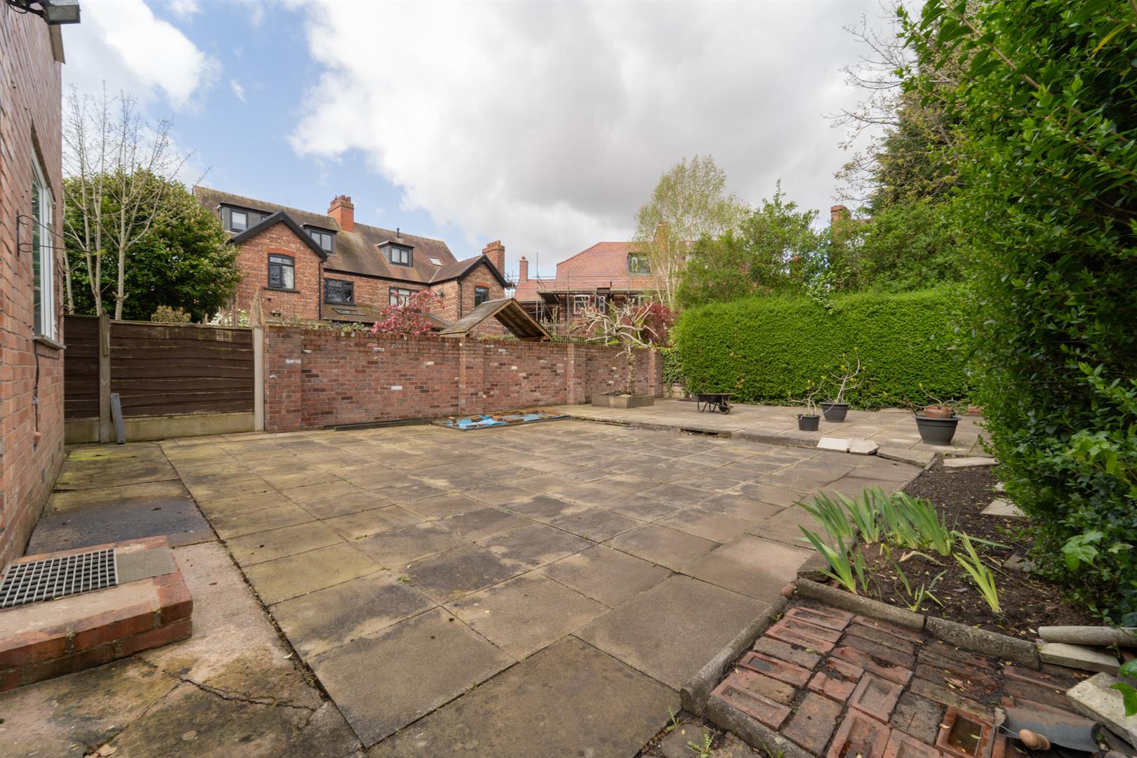 To the front aspect there is a low-level brick boundary wall with decorative railings above, double gates open onto a brick paved driveway providing off road parking for multiple vehicles. To the side aspect there are side gates allowing access into the rear. To the rear aspect there is a good sized large garden which is enclosed with a combination of brick walls and mature hedge row to the neighbouring properties.
