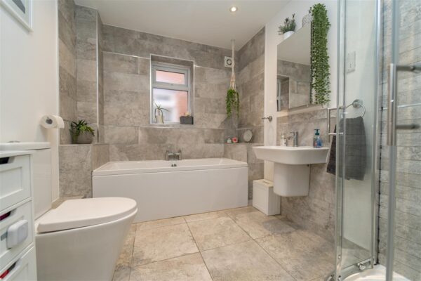 In brief, the well-planned accommodation comprises; A good sized entrance hall, a lounge to the front aspect, a useful storage cupboard and a utility area leading into a downstairs W.C. A large, stunning open plan fitted kitchen/ dining area can be found to the rear of the ground floor with bi-fold doors leading out into the rear enclosed garden. The downstairs is complete with energy- efficient underfloor heating.