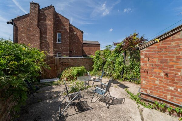 To the front aspect there is a low-level brick boundary wall with a mature hedgerow above, a path leads to the front door. To the rear aspect there is an enclosed garden, ideal for a table and chairs. The garden is enclosed with brick walls to the neighbouring properties, a timber gate allows access into the communal service alley.