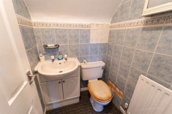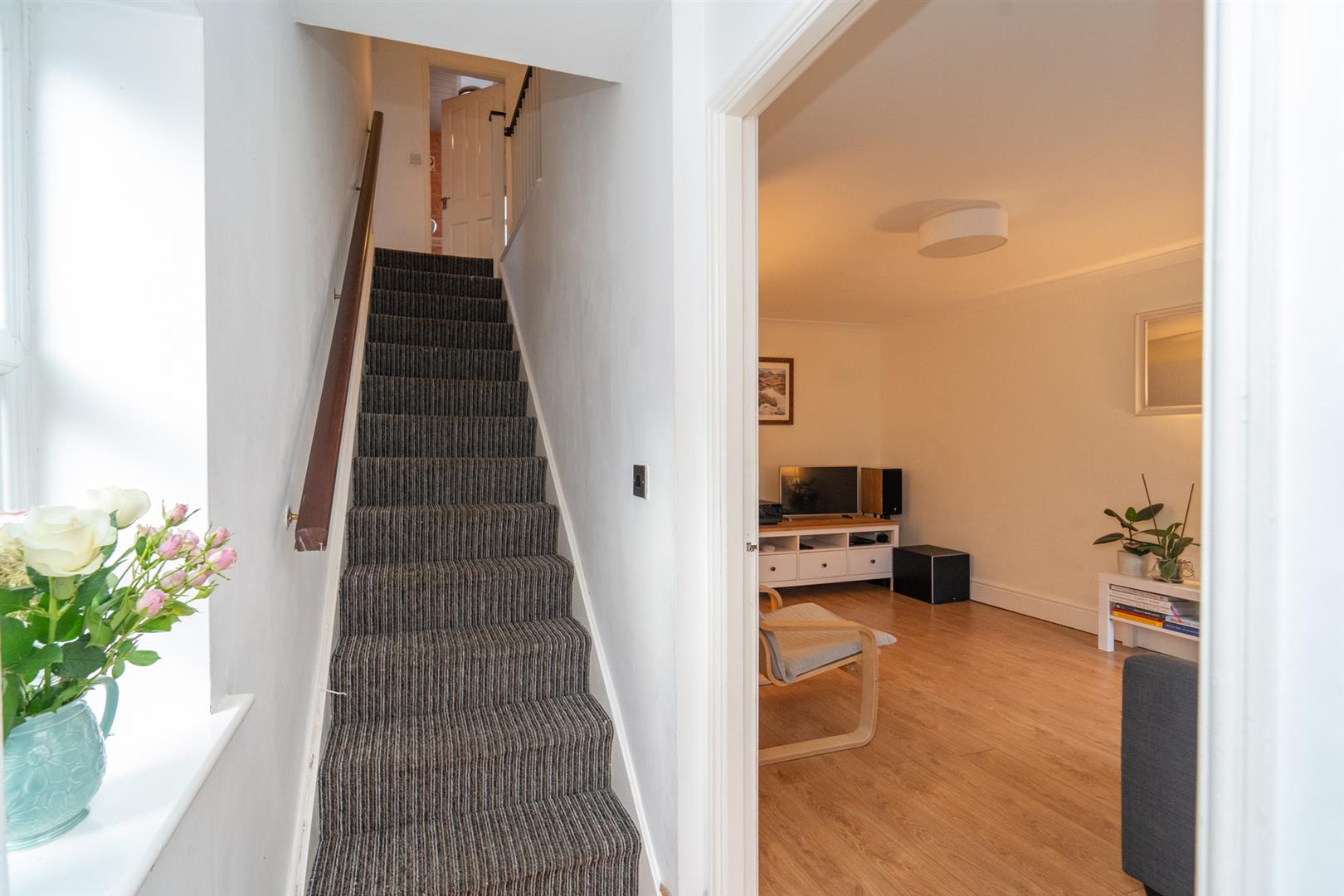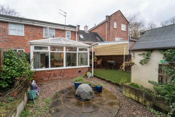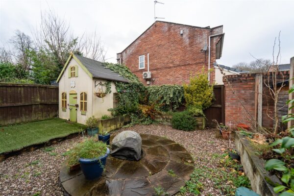 To the front aspect there is a low-level brick boundary wall with decorative railings and a driveway providing off road parking. There is shared access to the side aspect leading through to a private rear garden. Within the rear garden there is a decorative pebbled area, planted flower beds, a lawned area and a sheltered seating area.