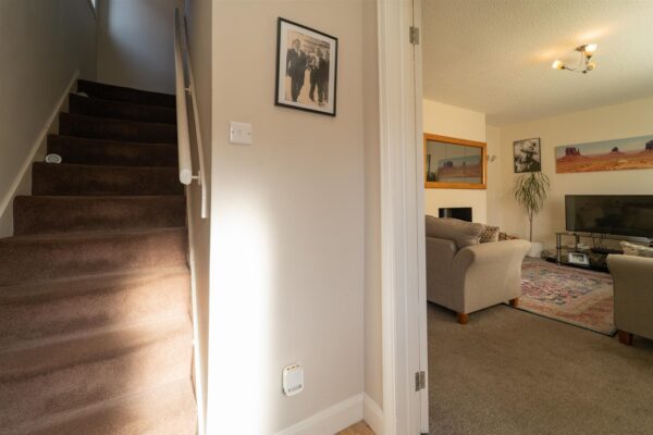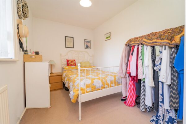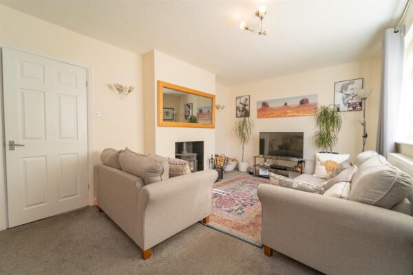 To the front, the property is set behind a low-level brick boundary wall and has a paved driveway, providing off road parking. A timber gate to the side provides access to the rear. The rear enjoys a good-sized enclosed lawned garden, complemented by a paved patio area, offering space for a table and chairs, along with planted flower beds filled with an array of trees and shrubs.
