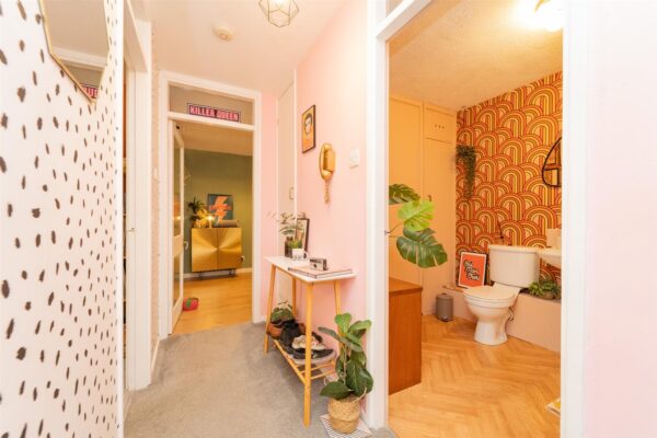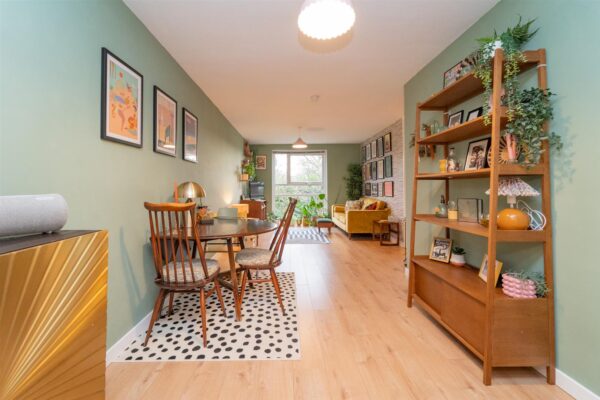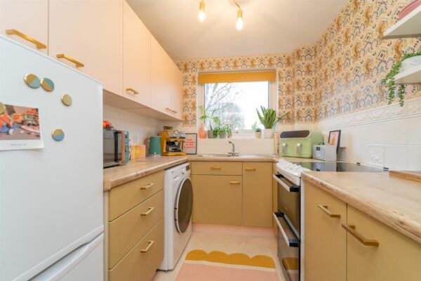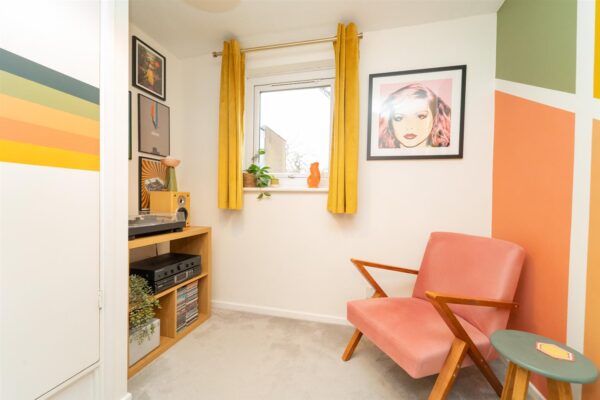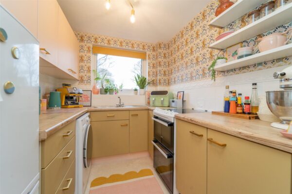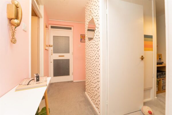 The development is set within well-maintained grounds, mainly lawned with mature shrubs and well-stocked flowerbeds. A paved path leads to the communal entrance hallways. There is ample off-road parking to the rear for both residents and visitors. Residents also have secure access to the meadows behind the development. The apartment benefits from a garage.