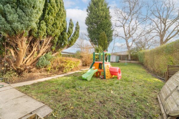 To the front aspect there is a driveway providing off road parking. A timber panelled fence and mature privet hedgerow with the neighbouring property. A timber gate to the side aspect leading to the rear. To the rear aspect there is a good sized enclosed lawned garden with a paved patio and established planted bushes and trees.