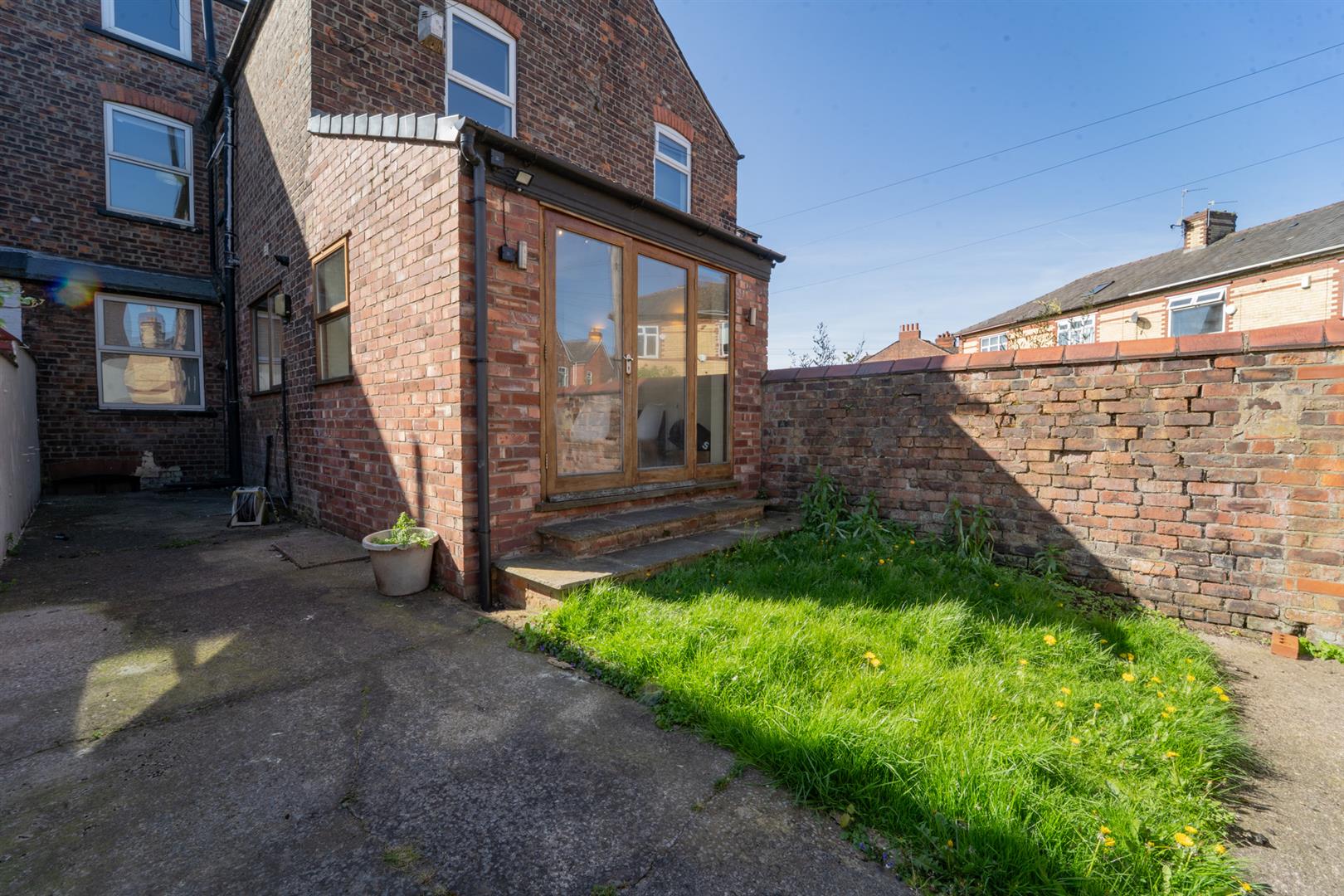 To the front aspect there is a low-level brick boundary wall with a mature hedgerow above, a pathway leads to the front door. To the rear aspect there is a patio and a lawned garden. The garden is enclosed with brick built walls to the neighbouring properties and there is a gate allowing access into the communal service alley.