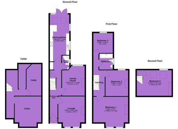 In brief the property consists of; a porch, an entrance hall which allows access down into the useful chamber cellar, a good-sized front facing lounge with bay window, a family room, a white three-piece shower room, and a sizeable kitchen/ diner with views and access out into the rear private garden.
