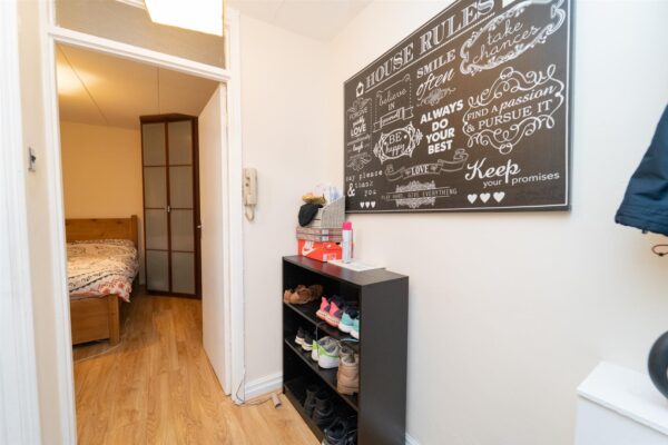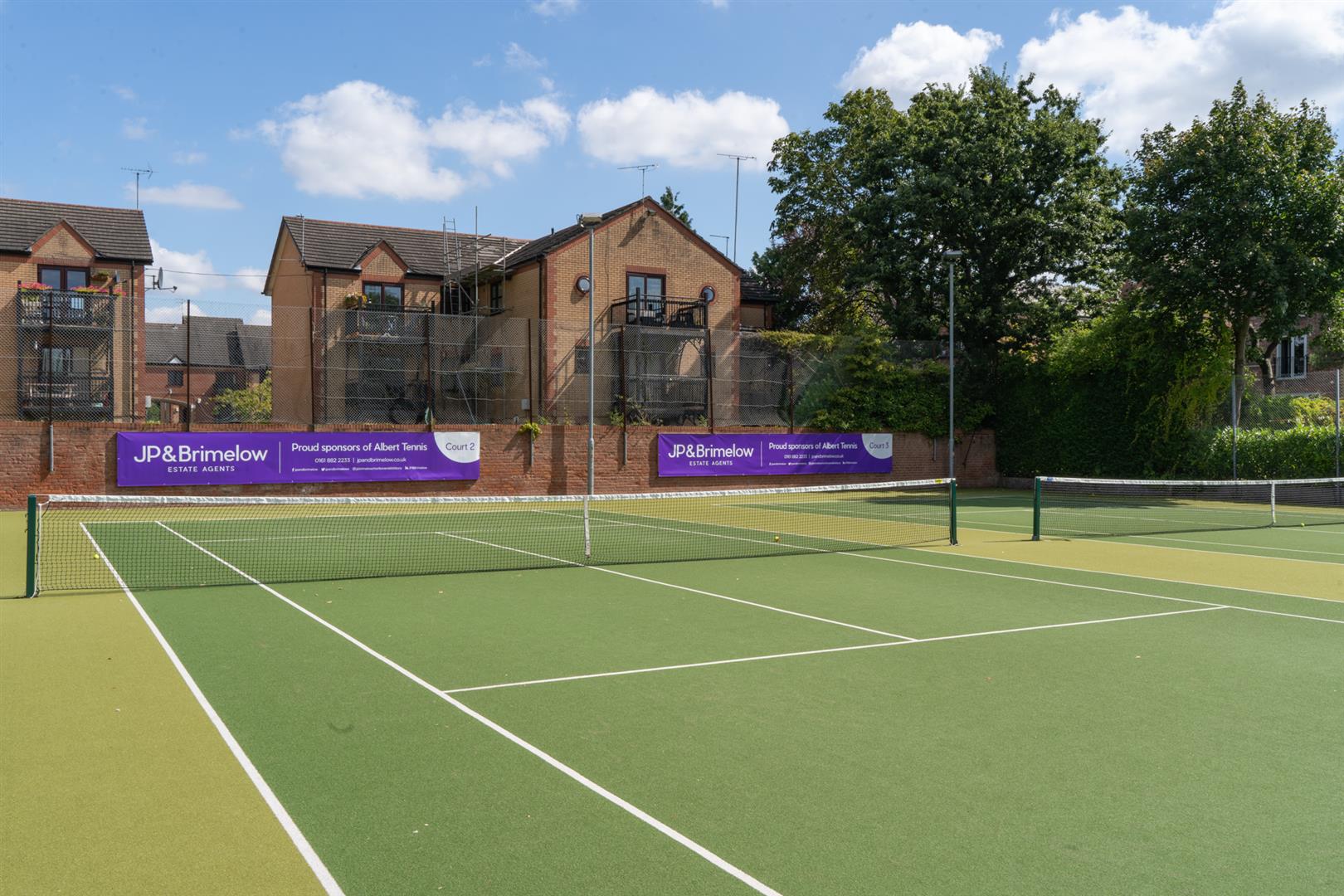 To the front of the property there are well maintained lawned areas with mature trees, flower beds and a communal car park.