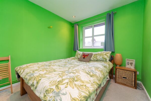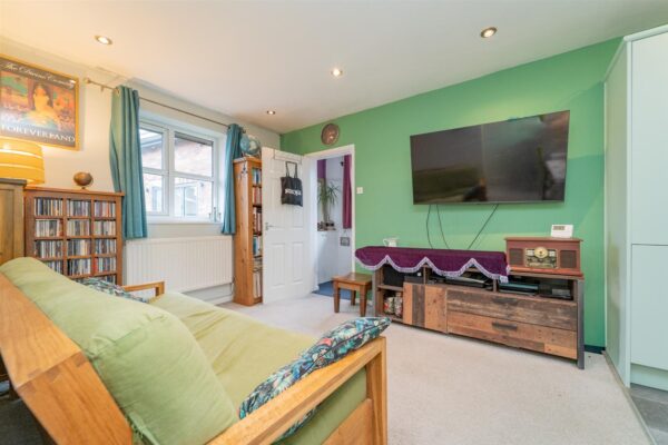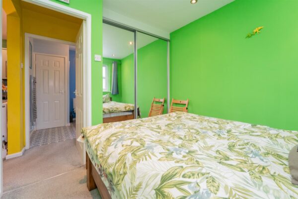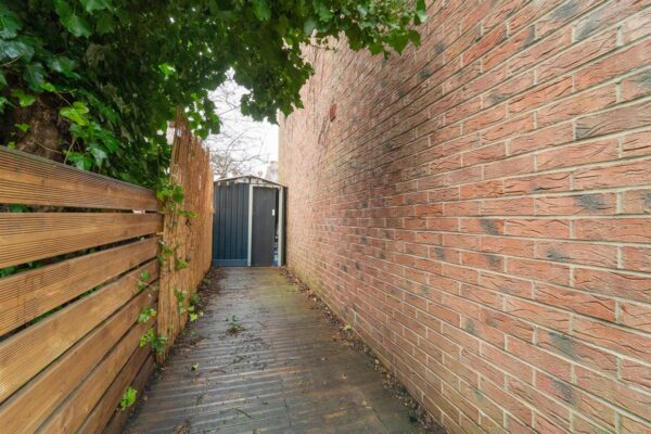 The property occupies a quiet, residential lane with shared pedestrian access from the street and an external gated area to the rear, access to nearby on street parking.
