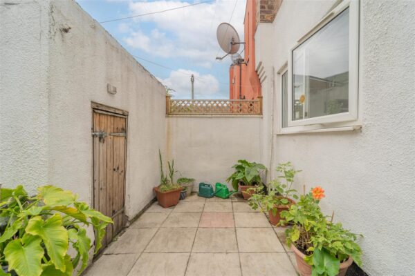 To the rear aspect there is an enclosed paved courtyard style garden with a brick boundary wall with the neighbouring properties. A timber pedestrian gate to the rear leading into the rear community alleyway. A useful storage shed.