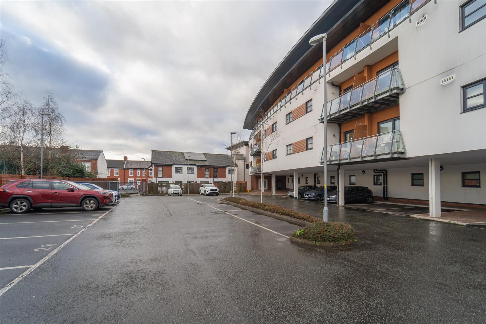 To the front aspect there is a low-level brick boundary wall with decorative railings above, a pedestrian gate leads to the front door. To the rear aspect there is gated off road parking which is allocated.