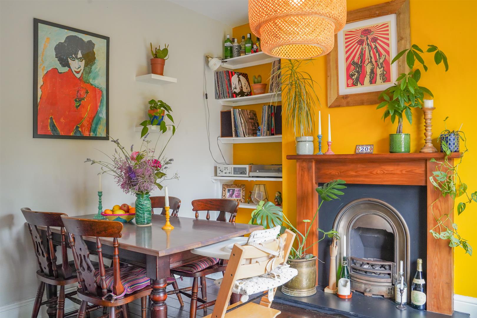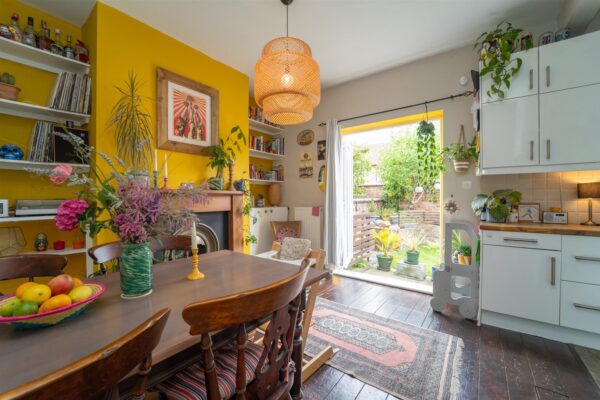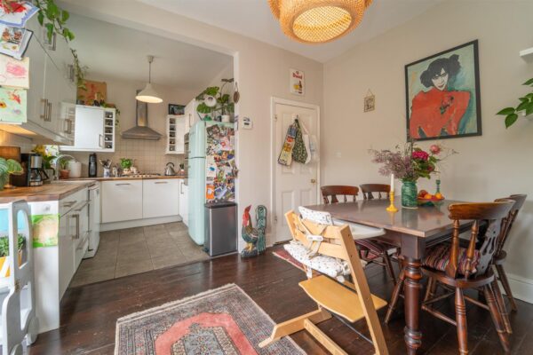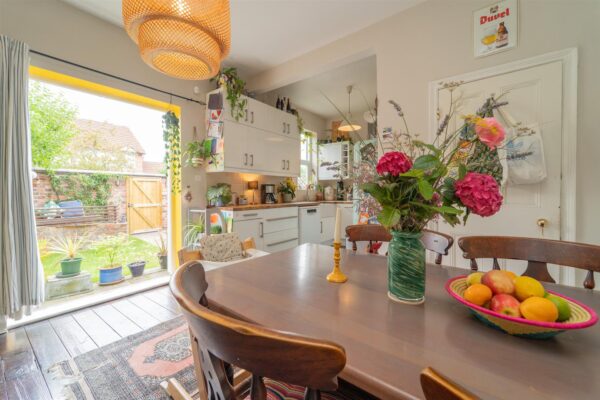 The dining room has stripped and varnished floor boards and patio doors allowing views and access into the private enclosed garden.